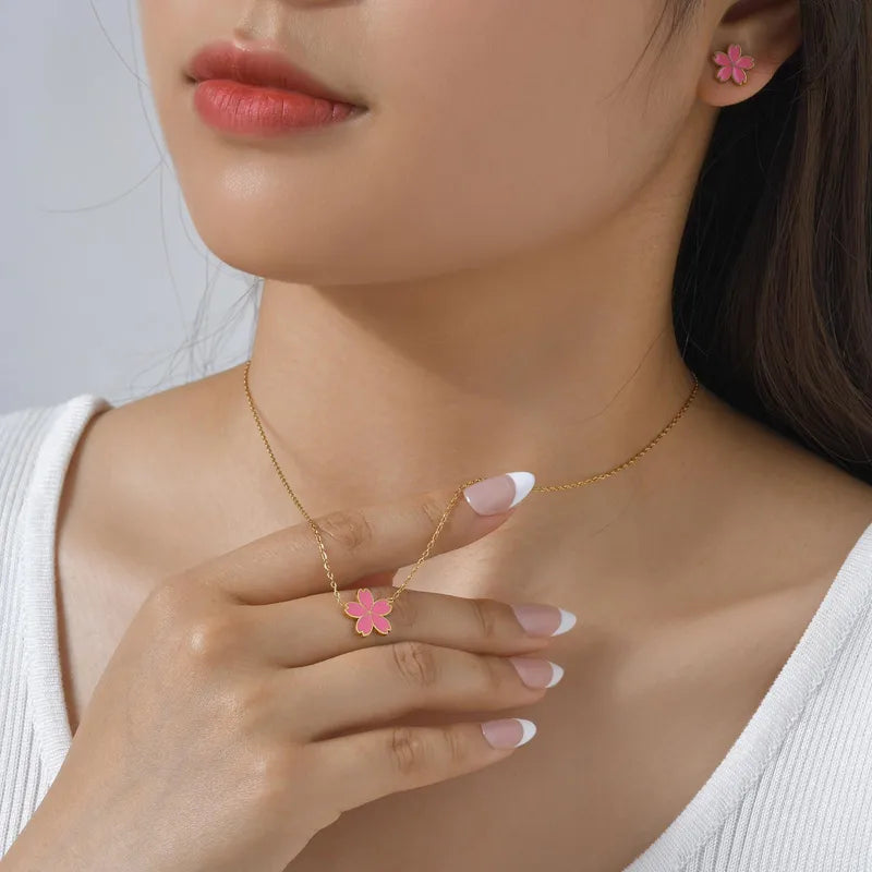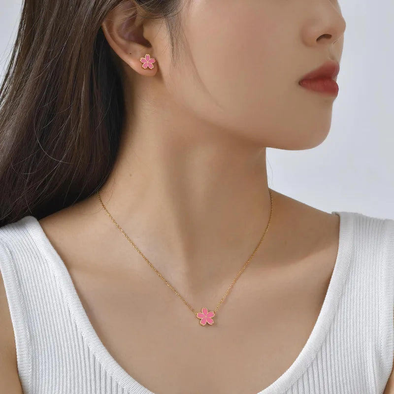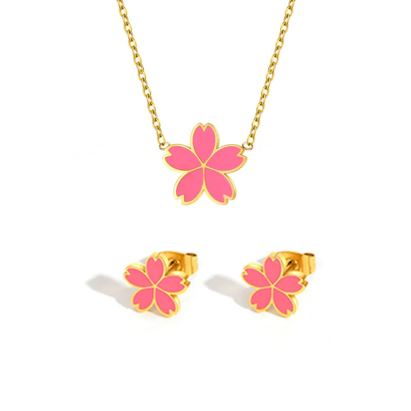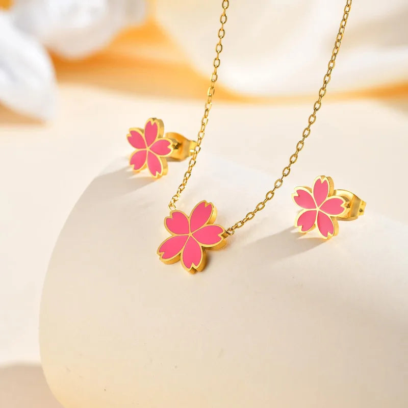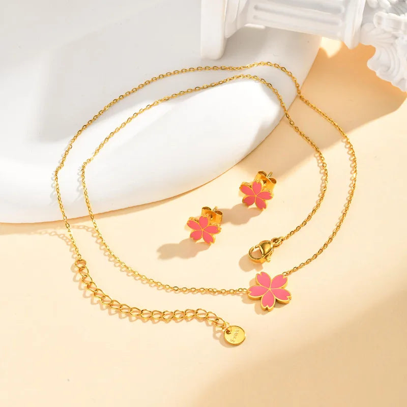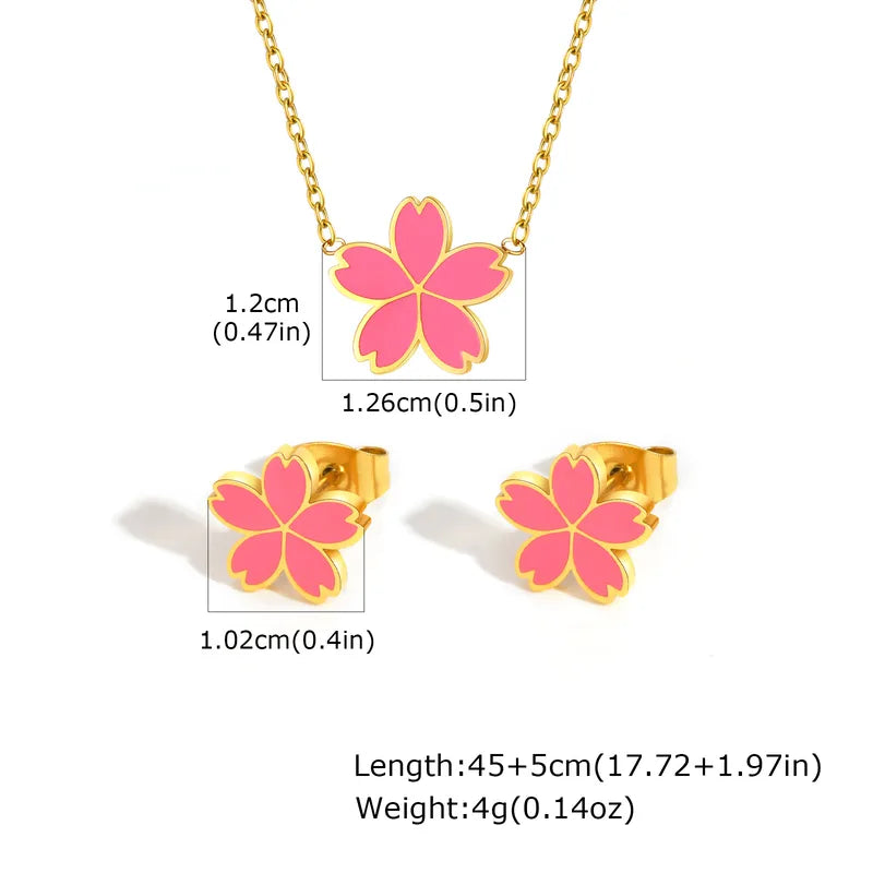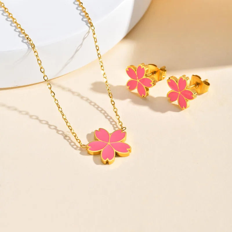 Parure 2 pièces - Collier Boucles Oreilles - Fleur - Acier Inoxydable