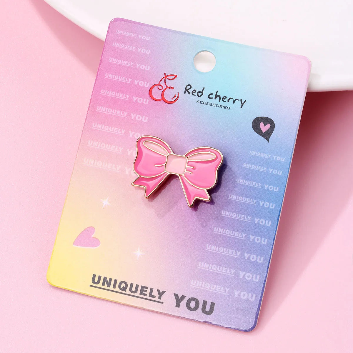 Pin's Broche avec Carte - Noeud Rose - Fantaisie - Alliage Email