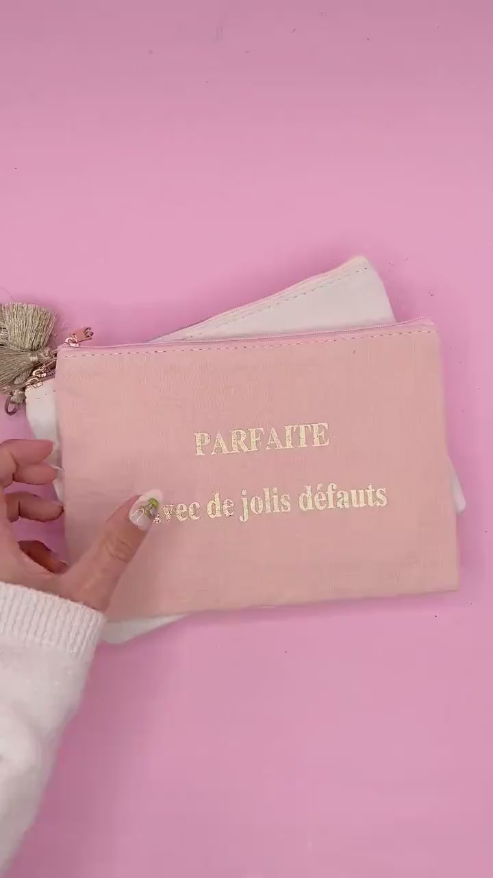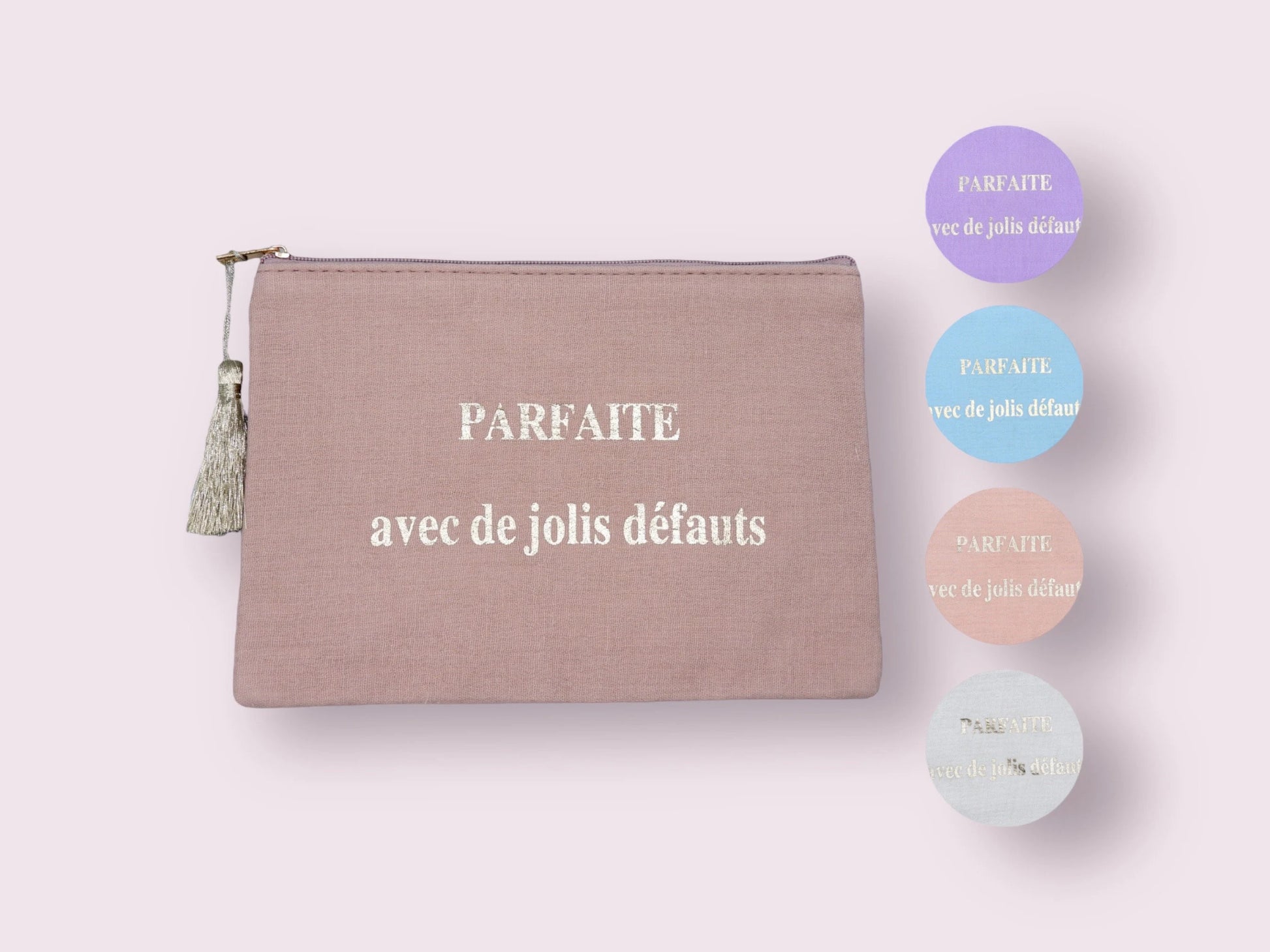 Découvrez notre pochette trousse parfaite pour celles qui aiment les jolis défauts avec une touche d'humour et de fun. Idéale pour la femme féminine qui adore les couleurs layette pastel. Cette trousse vous accompagnera partout avec style et originalité.