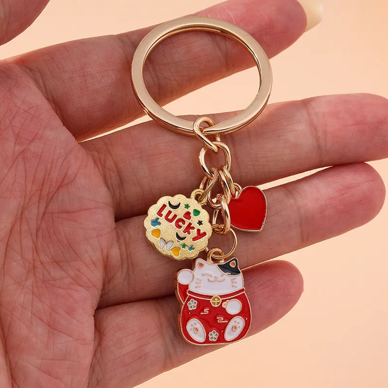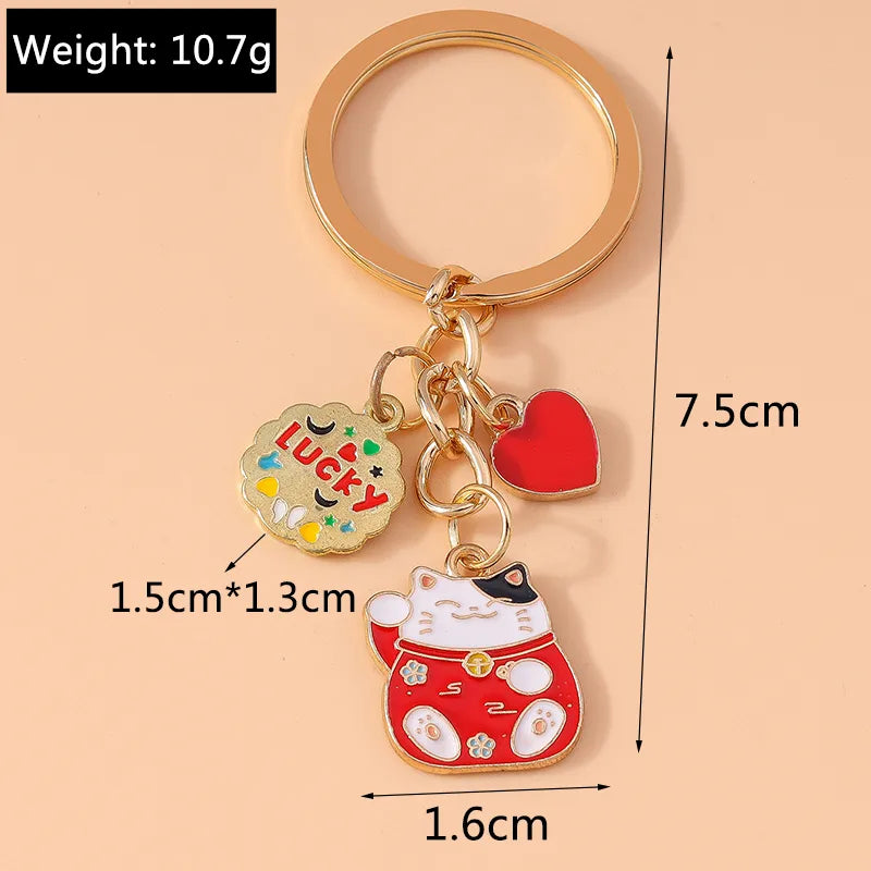 Porte Clés - Lucky Chat Chinois - Métal - Pendentif Sac Kawaii Mignon
