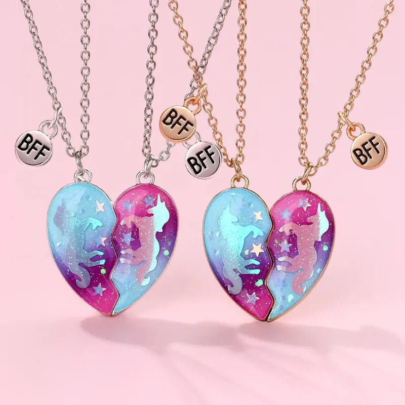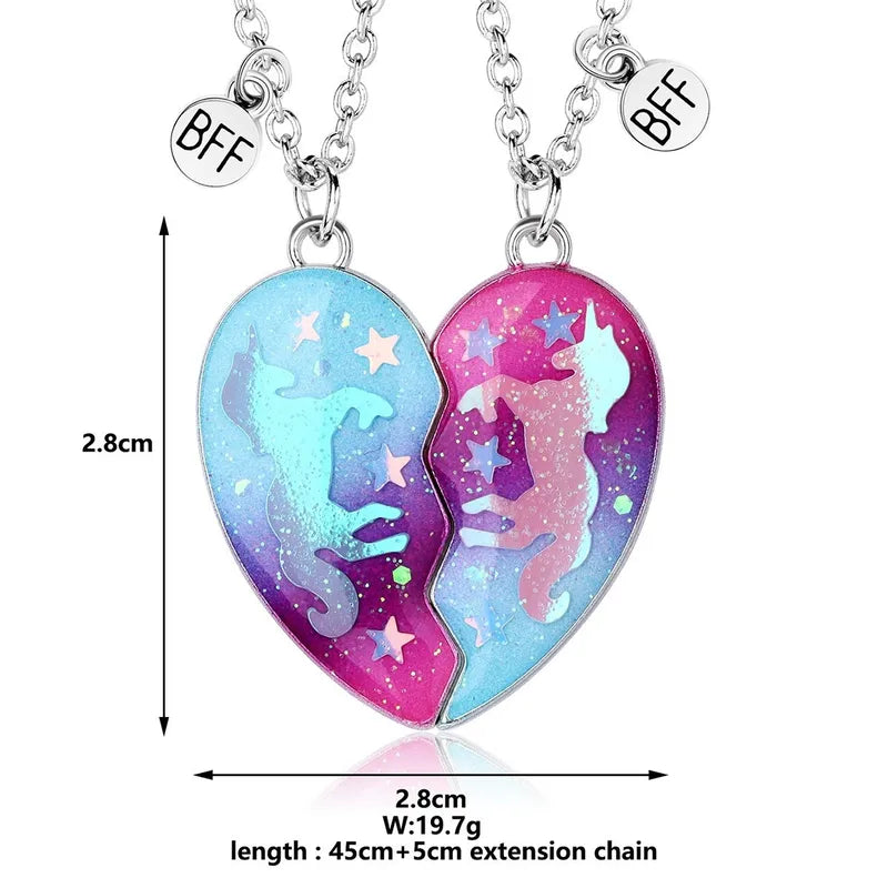 Lot de 2 Colliers BFF Aimanté - Best Friends Forever - Pendentif Coeur Licorne - Amitié