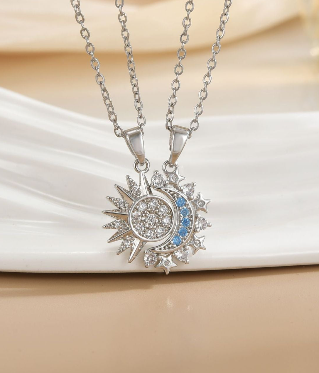 Ce lot de 2 colliers d'amitié est parfait pour les meilleurs amis. Les pendentifs en forme de lune et soleil symbolisent l'amitié éternelle. Avec l'aimant, les colliers peuvent être séparés et partagés avec votre BFF. Ajoutez une touche de fantaisie à votre look et montrez votre amitié avec style.