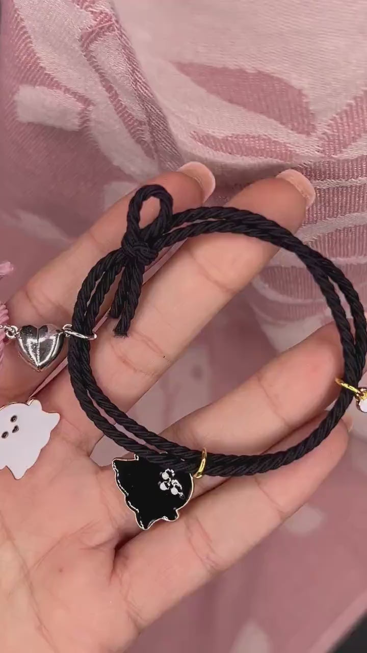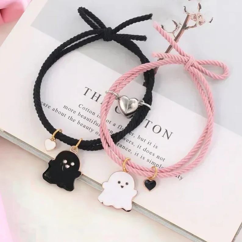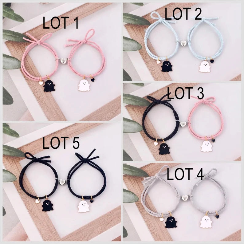 Lot de 2 Bracelets D'amitié Cordon Elastique - Petit Fantôme - BFF - Best Friends Forever - Fantaisie - Pendentif Aimanté Coeur