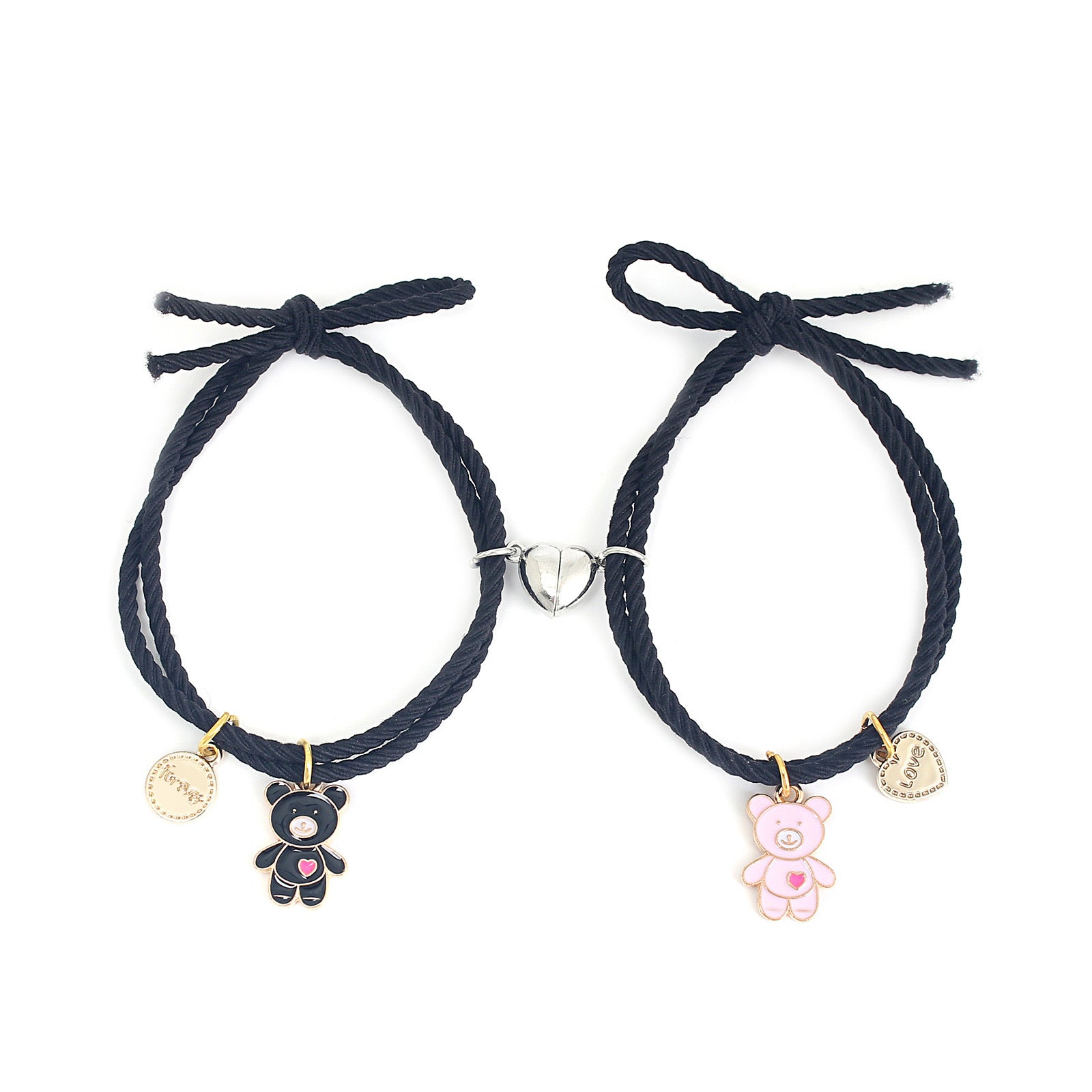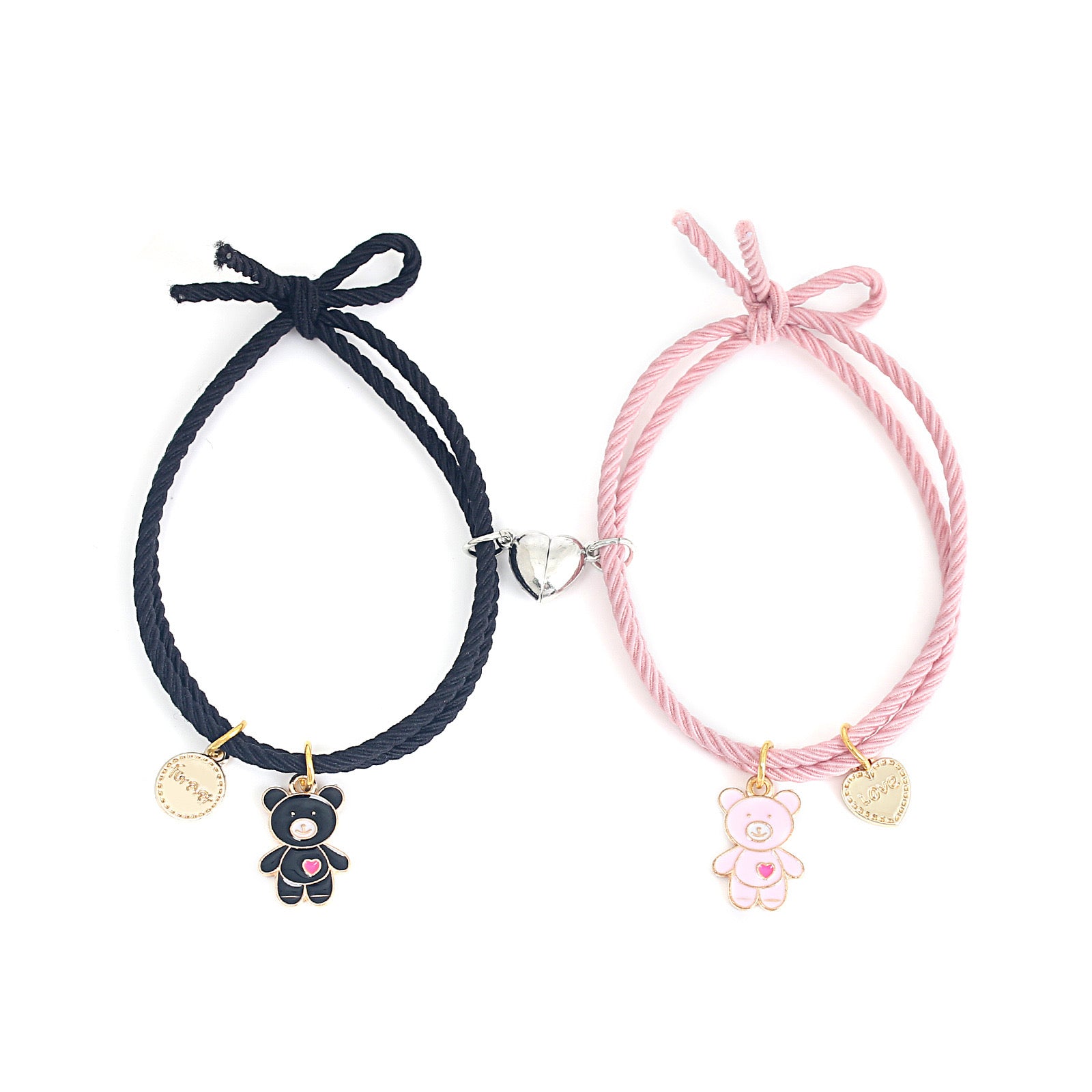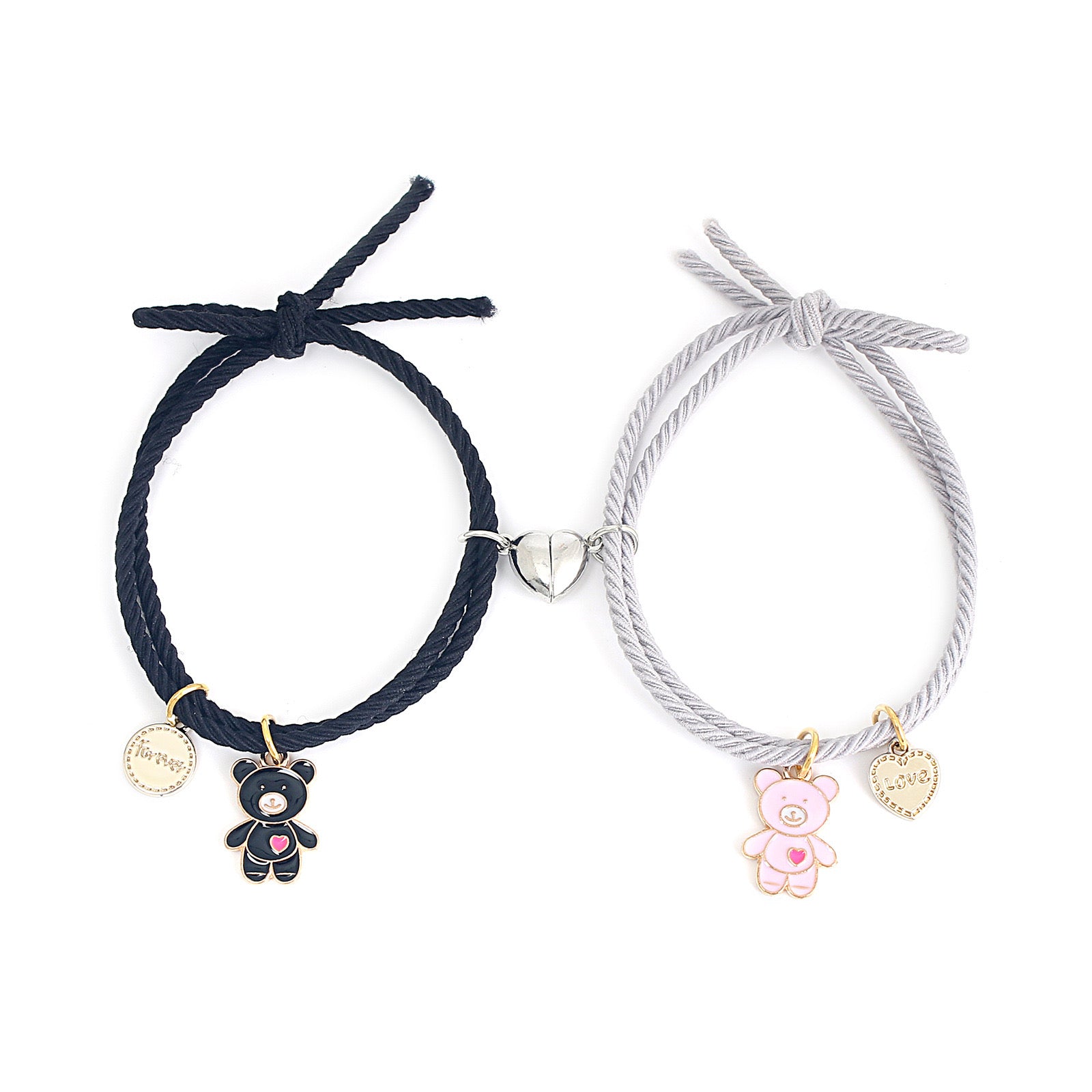 Lot de 2 Bracelets D'amitié Cordon Elastique - Petit Ourson - BFF - Best Friends Forever - Fantaisie - Pendentif Aimanté Coeur