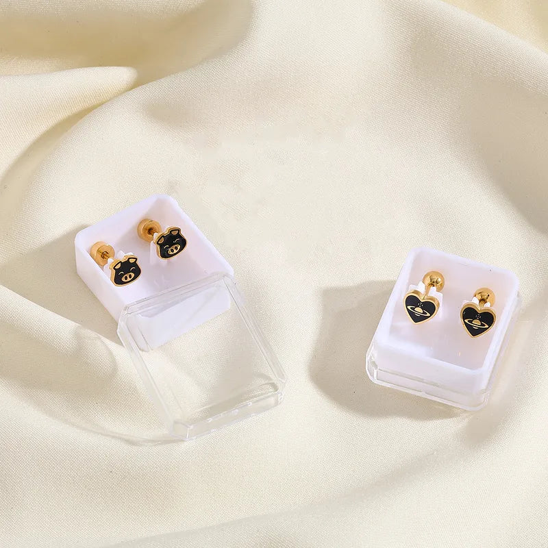 Découvrez nos Boucles d'Oreilles en forme de Cochon ou Cœur Planète, délicatement conçues pour ajouter une touche d'élégance et de fantaisie à votre collection de bijoux. Fabriquées en acier inoxydable 304 et plaquées d'or 18K, ces clous d'oreilles allient durabilité et raffinement. Chaque paire capture l'essence du charme ludique tout en restant chic et moderne, parfaite pour sublimer votre style quotidien ou pour offrir un cadeau unique à un être cher. Adoptez ces bijoux originaux qui reflètent votre personnalité et votre amour pour les créations distinctives.