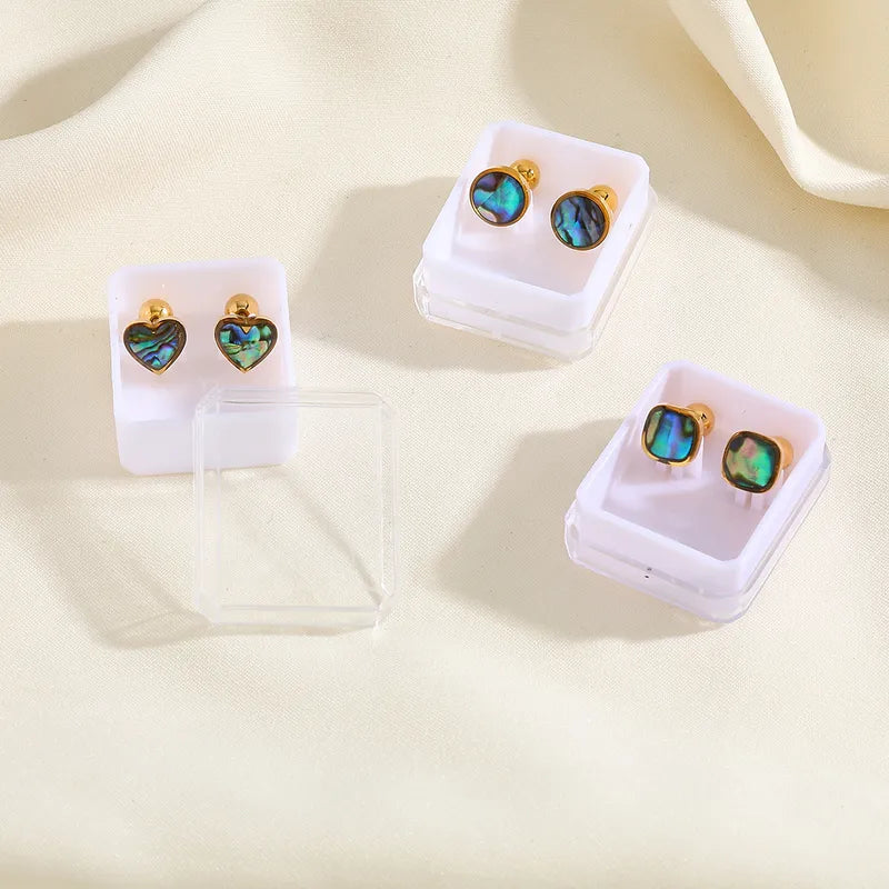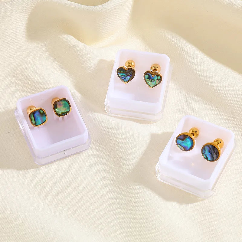 Boucles Oreilles - Coquille d'Ormeau - Acier Inoxydable 304 Zircon Plaqué Or 18K - Clous d'oreilles