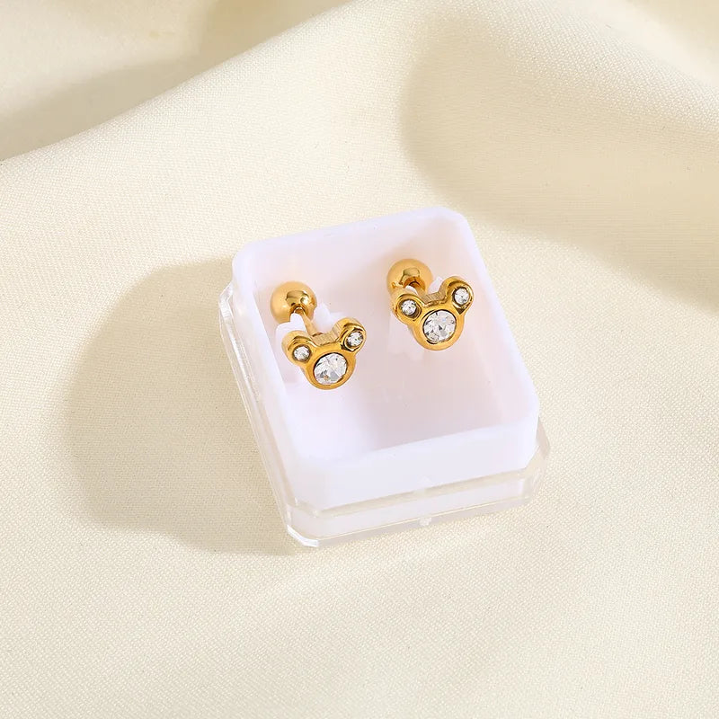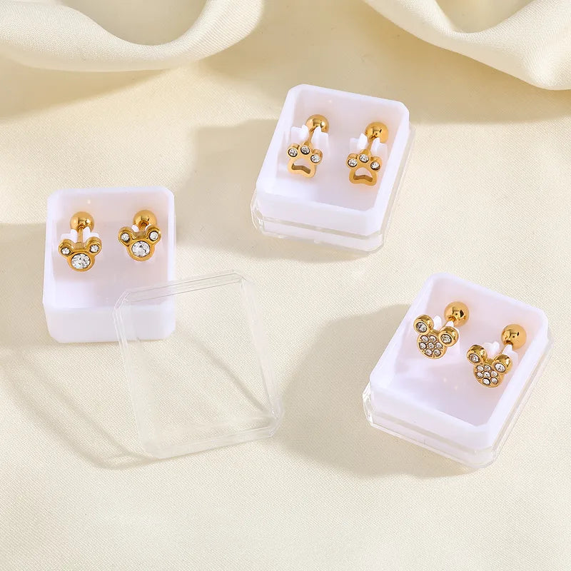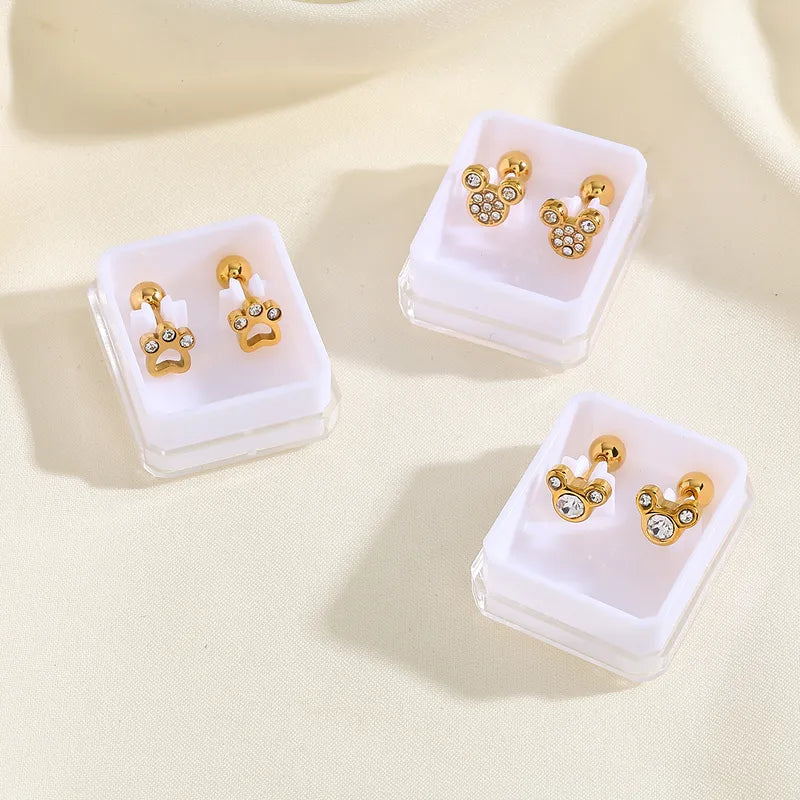 Boucles Oreilles - Pate Chien Chat - Acier Inoxydable 304 Zircon Plaqué Or 18K - Clous d'oreilles