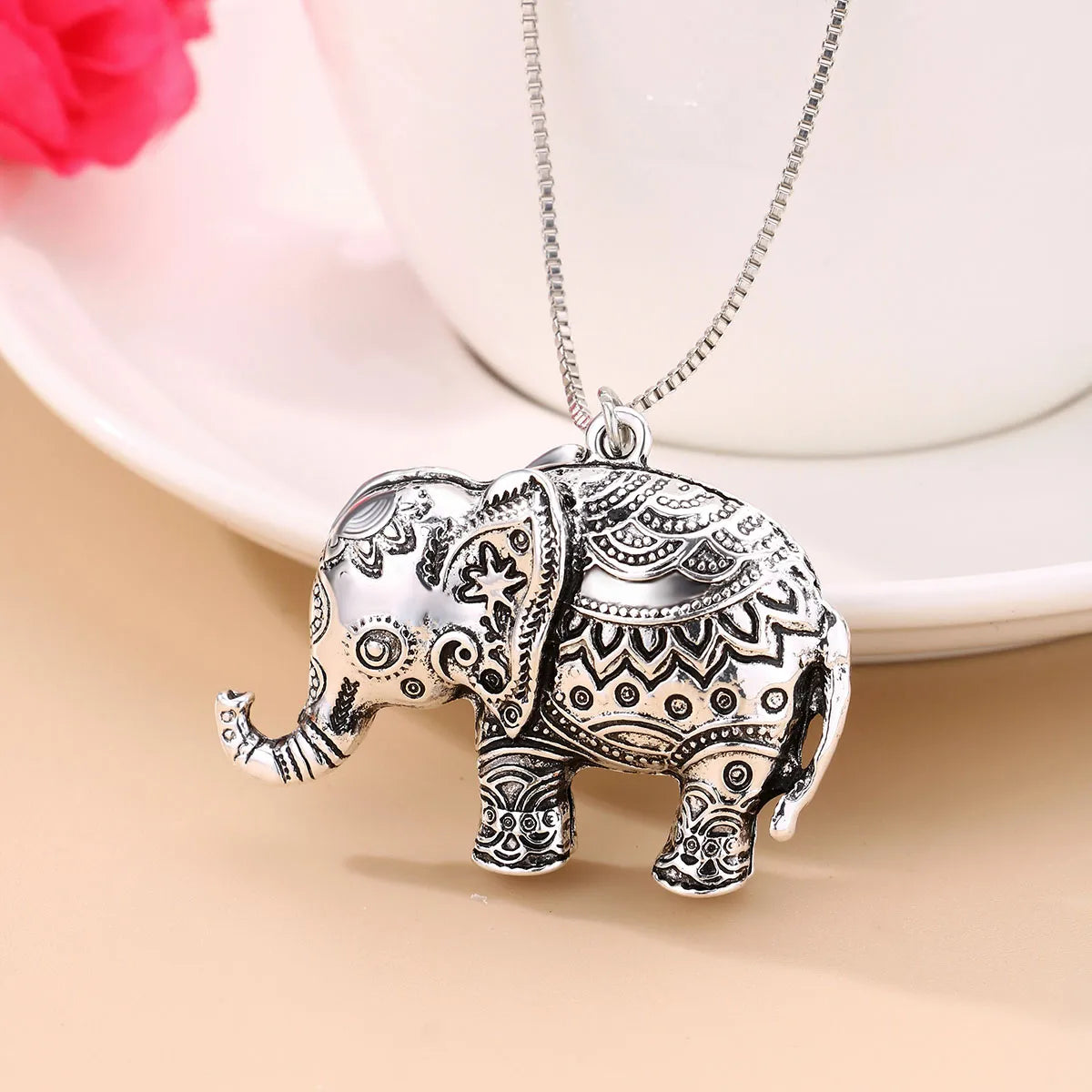 Ce collier fantaisie avec pendentif éléphant est un véritable bijou de charme. Orné de strass étincelants, il allie élégance et originalité. Fabriqué en alliage doré argenté, il est parfait pour ajouter une touche de raffinement à votre tenue. Livré avec une carte, il fait un cadeau idéal pour exprimer votre affection avec style. 🌟🐘✨