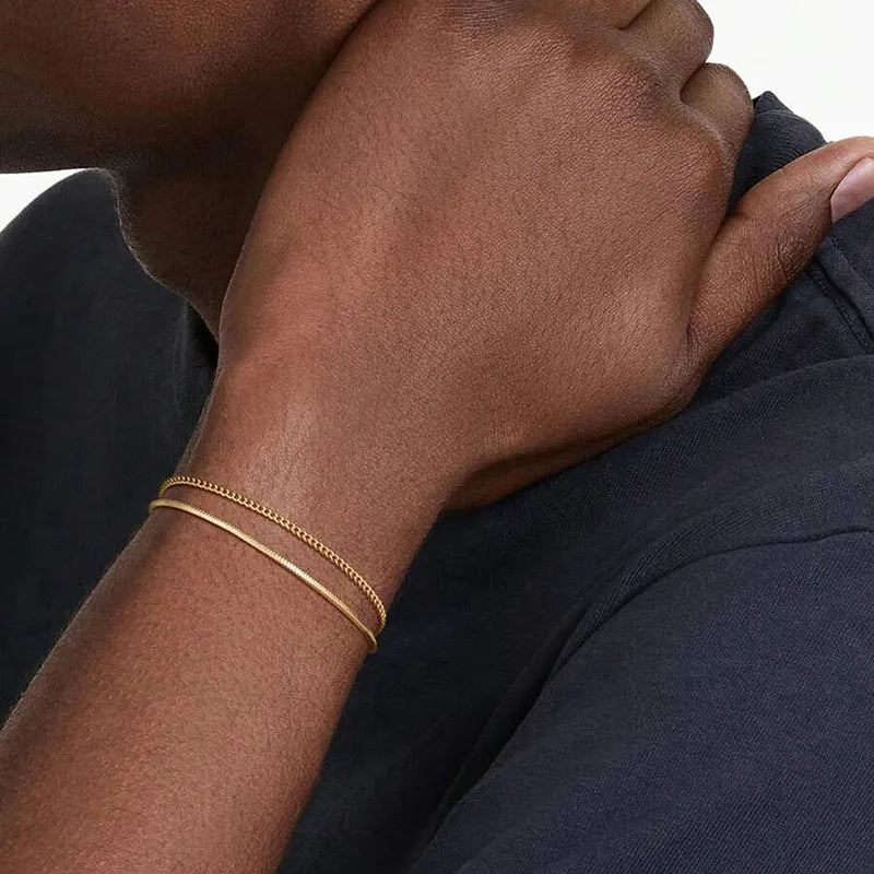 Double Bracelets Adultes Homme - Liens Chaines - Acier Inoxydable Doré Argenté