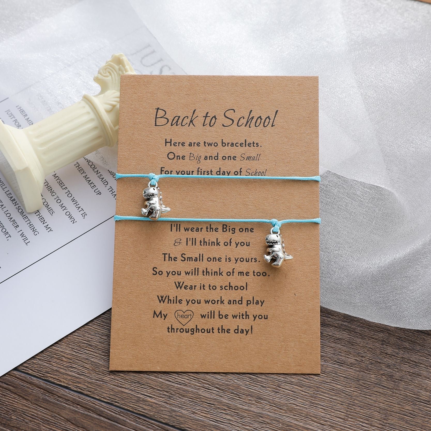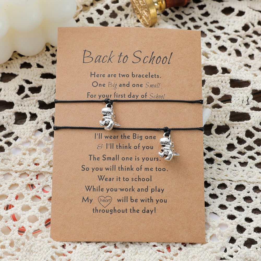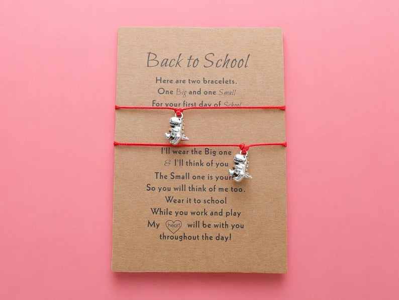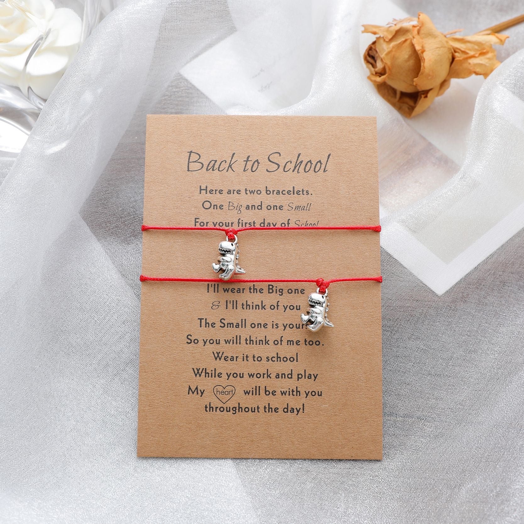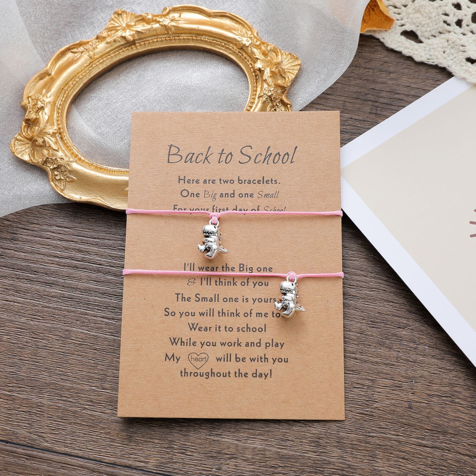 Lot de 2 Bracelets D'amitié Cordon Réglable avec Carte - Petit Dinosaure - Rentrée Classe Ecole - BFF - Best Friends Forever - Amitié