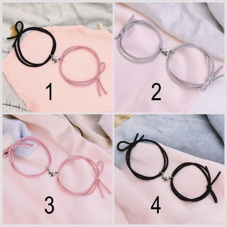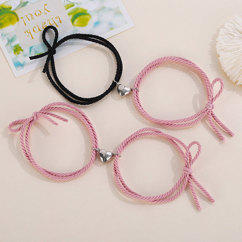 Lot de 2 Bracelets D'amitié Cordon Élastique - Couleurs - BFF - Best Friends Forever - Pendentif Aimanté Coeur - Amoureux Couple