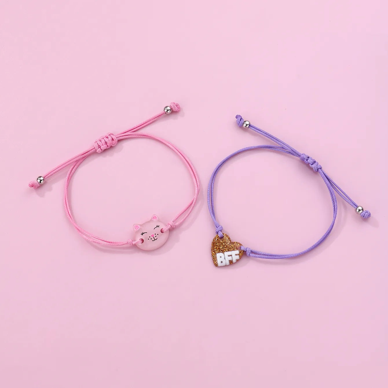 Lot de 2 Bracelets D'amitié Cordon Réglable avec Carte - Back to School - Chat Coeur - BFF - Best Friends Forever - Amitié - Fantaisie