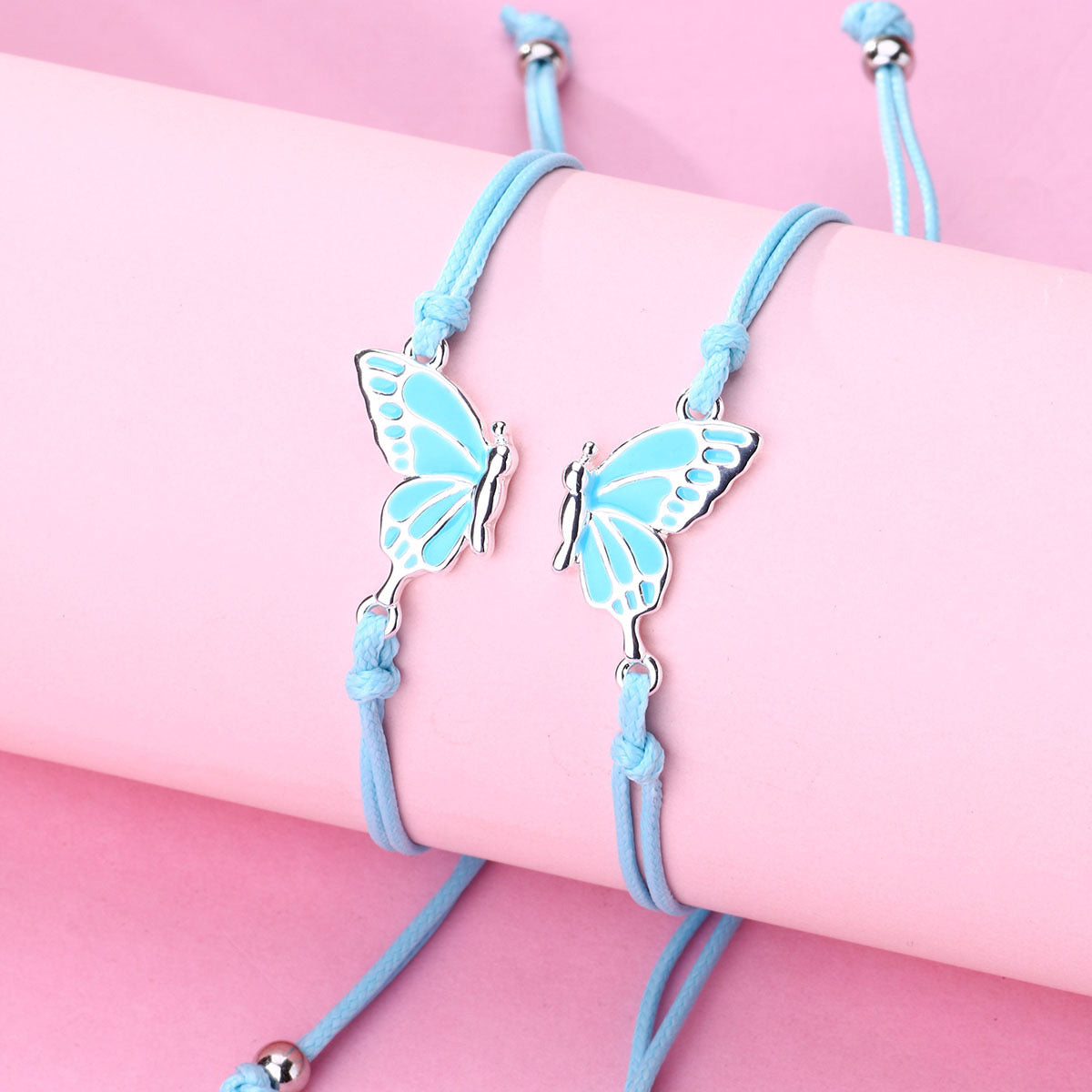 Lot de 2 Bracelets D'amitié Cordon Réglable avec Carte - Papillon - BFF - Best Friends Forever - Amitié - Fantaisie - Mignon