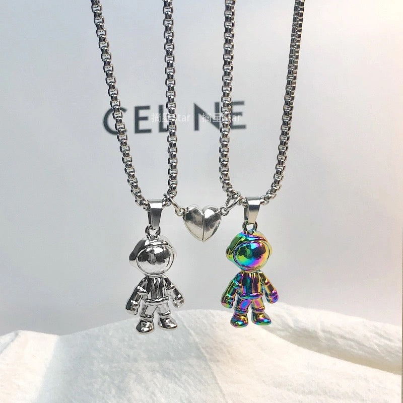Lot de 2 Colliers D'amitié - Hip Hop Astronaute - BFF - Best Friends Forever - Pendentif Aimanté Coeur - Amoureux Couple Amitié