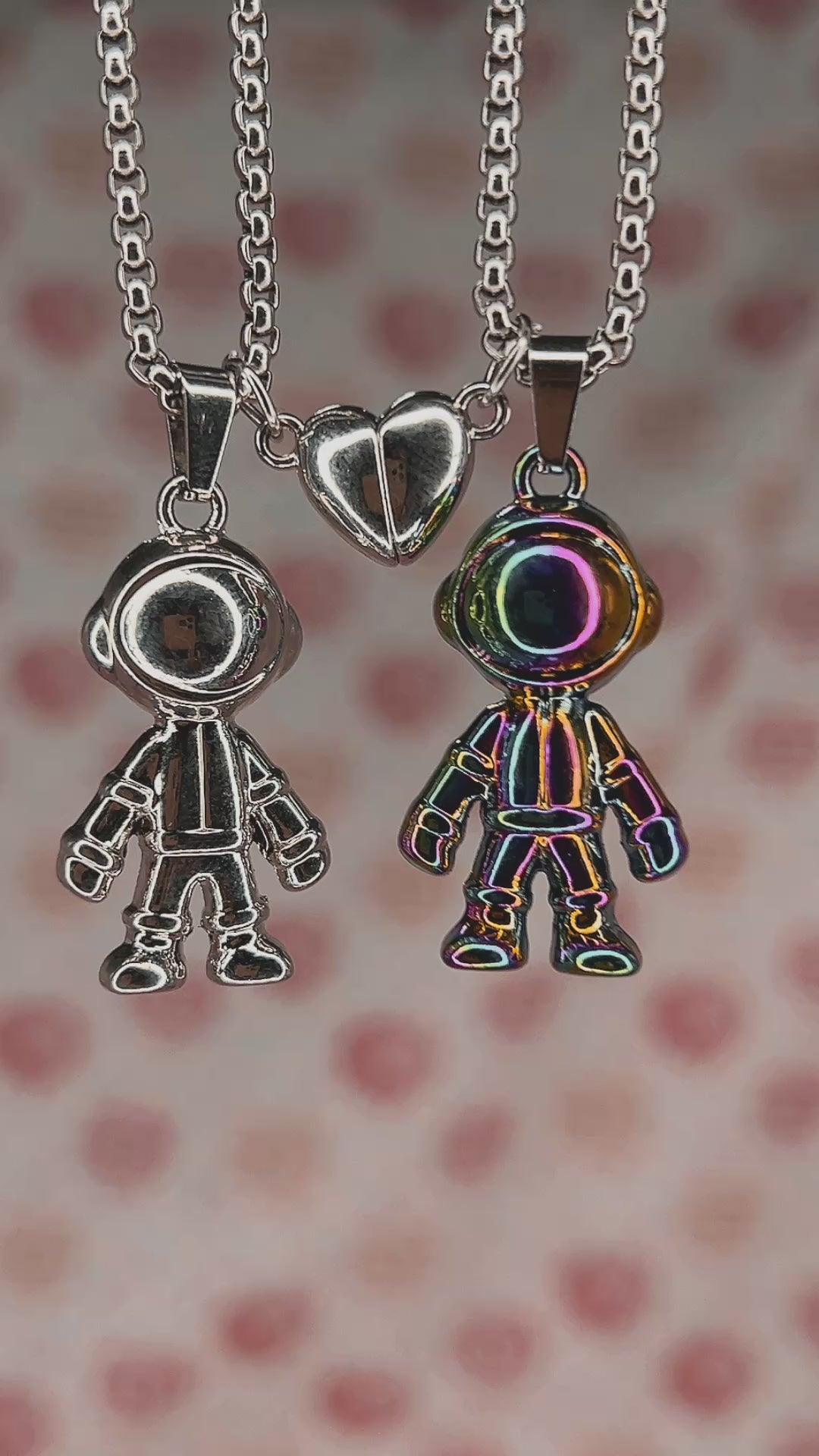 Découvrez notre lot exclusif de 2 chaînes colliers d'amitié, parfait pour célébrer l'union et l'affection entre amis ou amoureux. Inspiré par l'univers du Hip Hop et l'infinité de l'espace, ce duo de pendentifs astronautes incarne l'aventure et la complicité. Conçus pour les meilleurs amis (Best Friends Forever) ou pour les couples cherchant à exprimer leur amour de manière unique, ces colliers fantaisie portent un message profond d'attachement et de connexion. Chaque moitié du pendentif forme un cœur lorsqu'elles sont réunies, symbolisant l'union parfaite grâce à un aimant puissant. Que ce soit pour un anniversaire, une occasion spéciale, ou simplement pour montrer combien vous tenez l'un à l'autre, ce lot de colliers est le cadeau idéal pour témoigner d'un lien indéfectible.