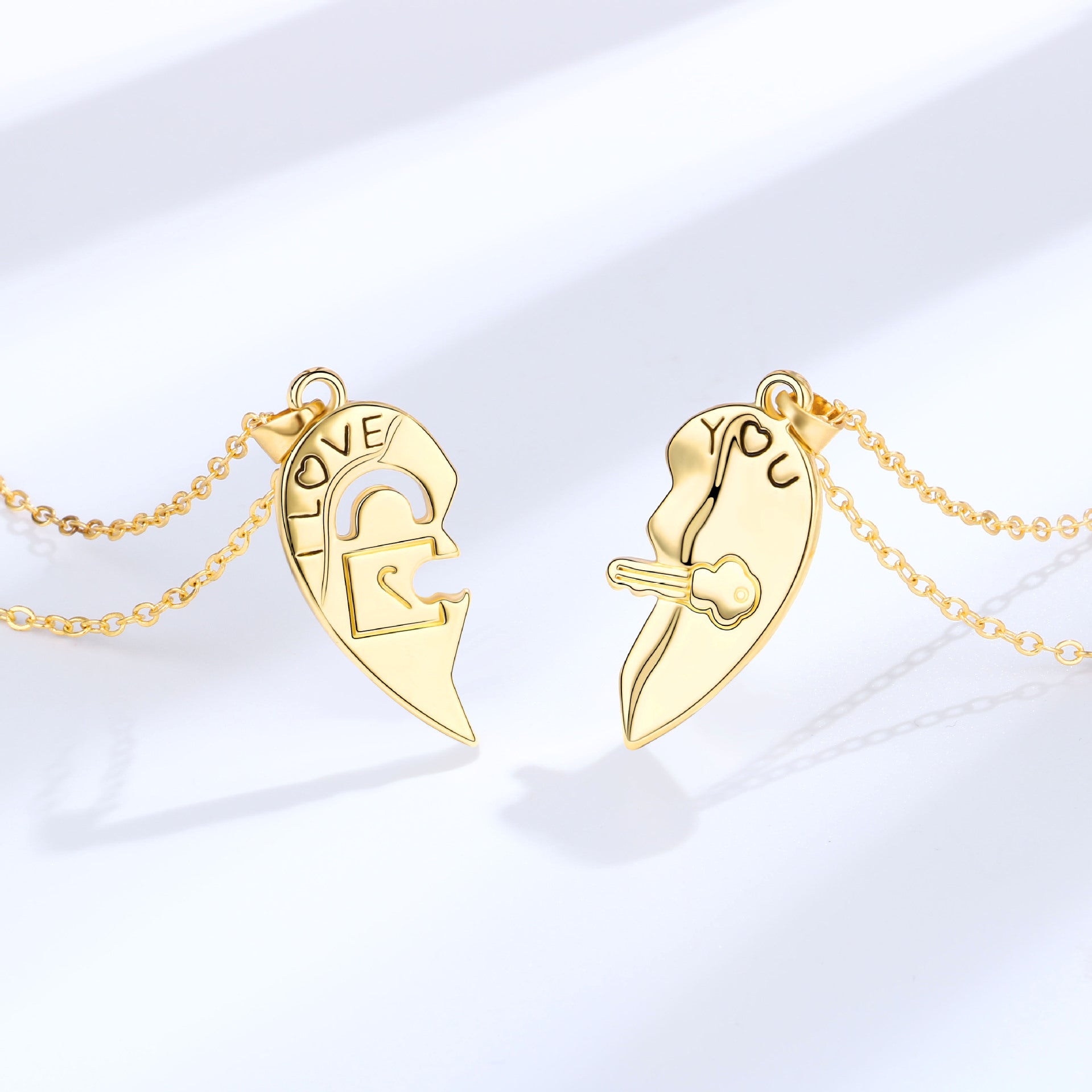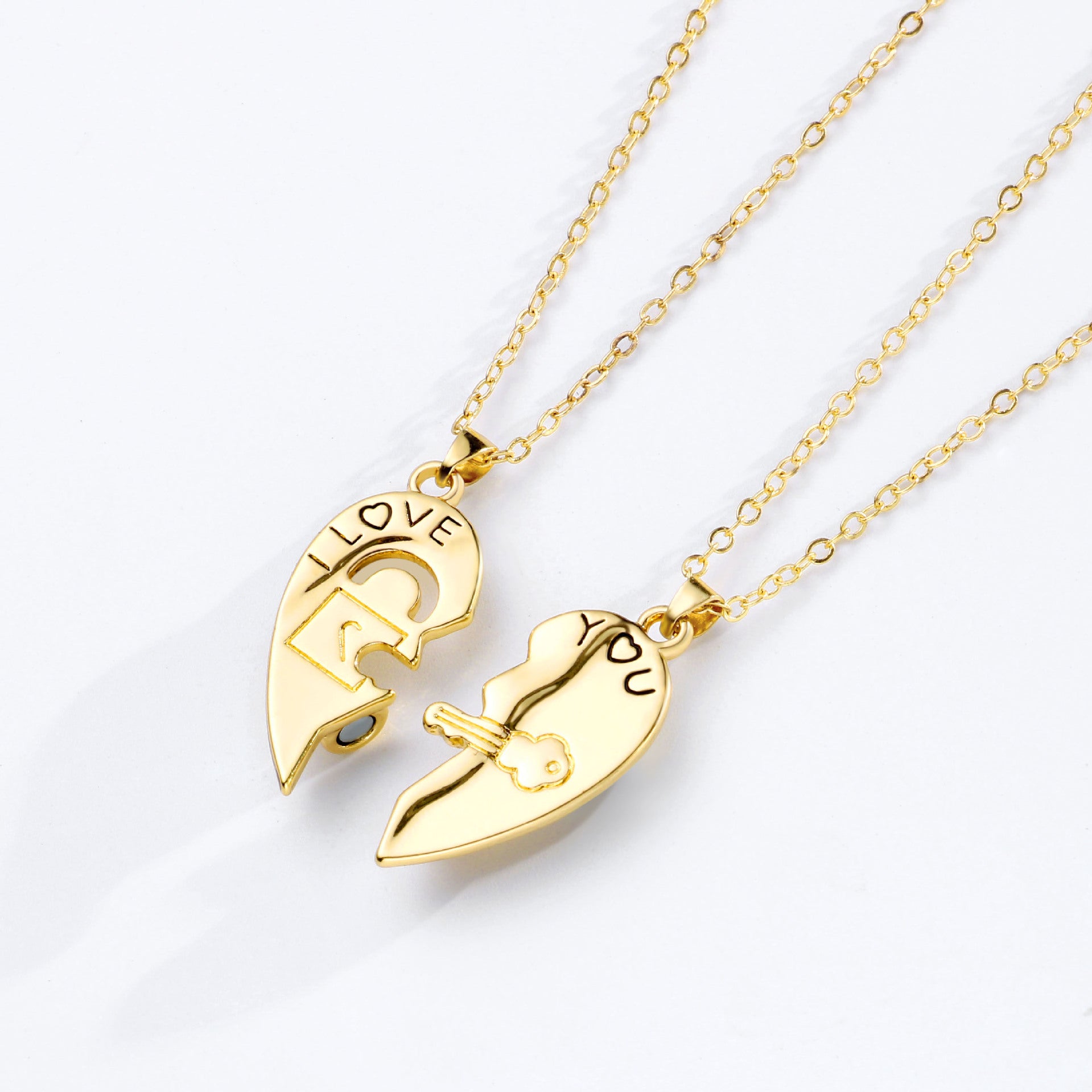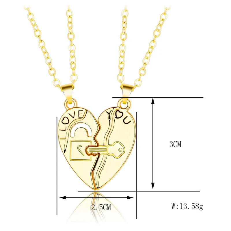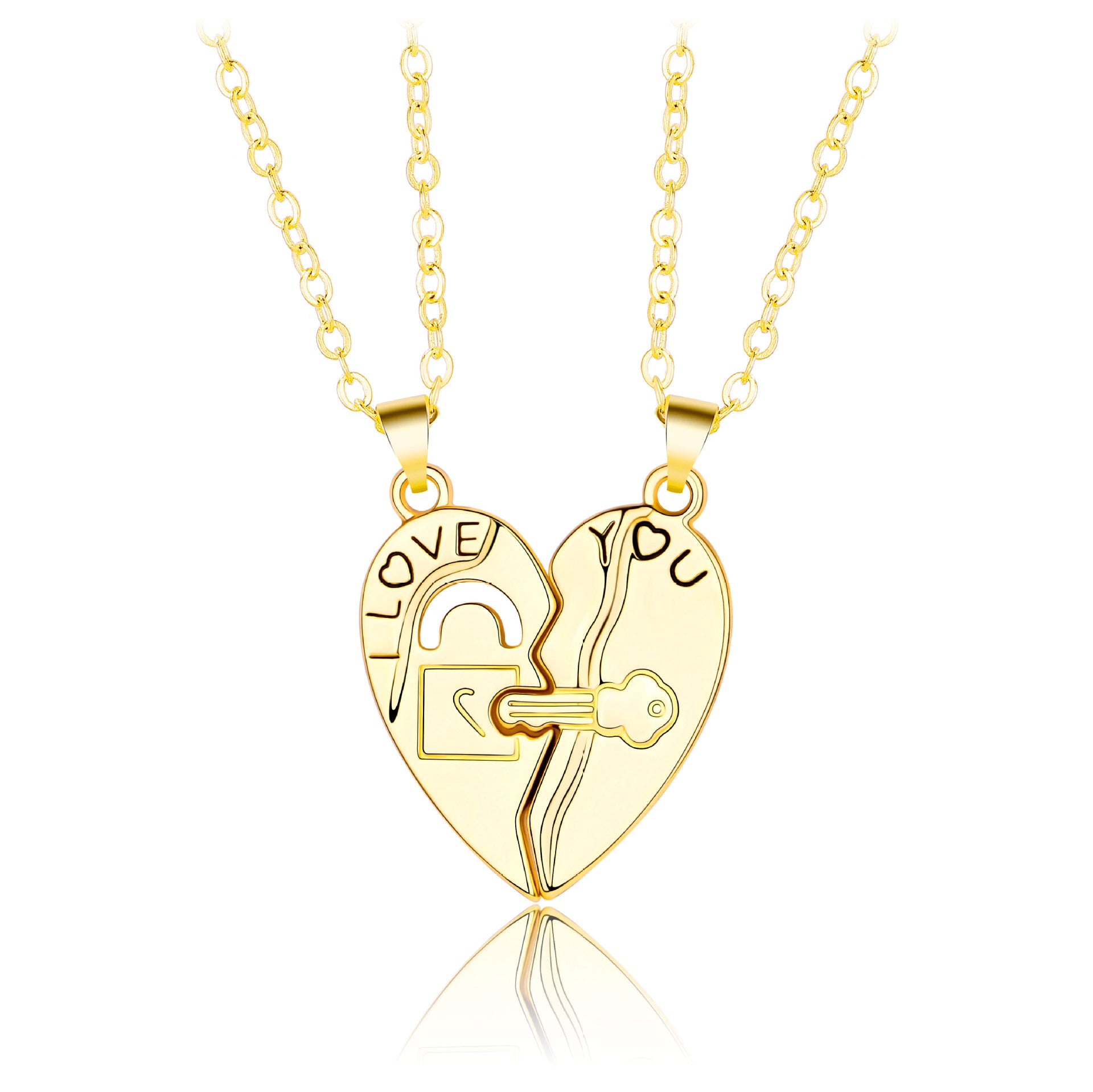 Lot de 2 Colliers D'amitié Aimanté - Coeur et Clé - Je t’aime - BFF - Best Friends Forever - Pendentif - Amoureux Couple Amitié