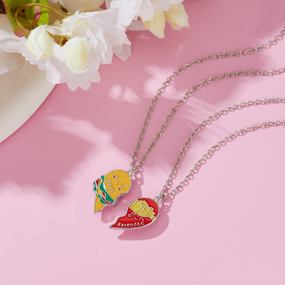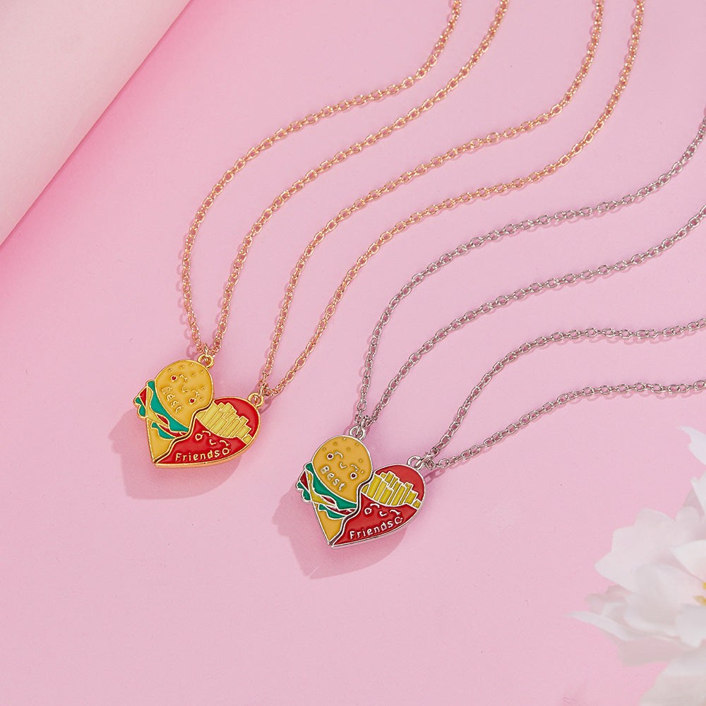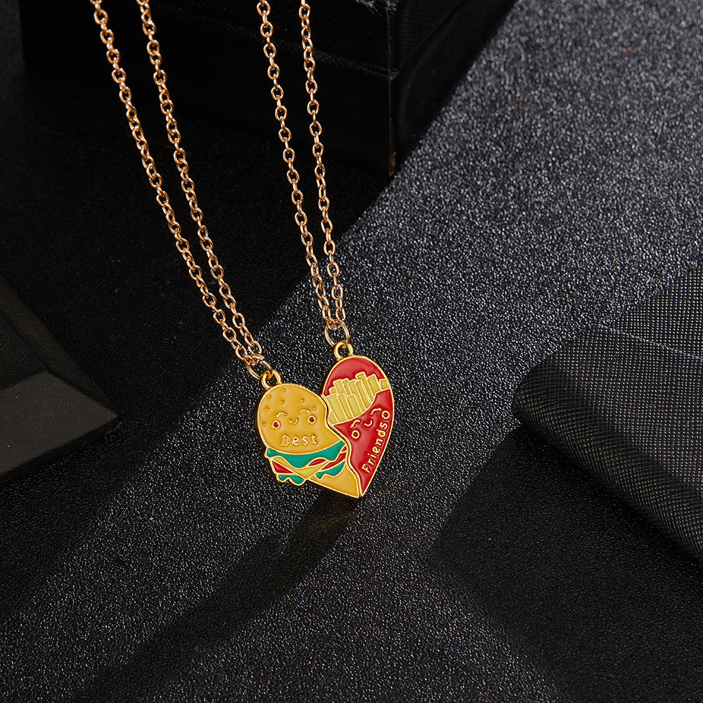 Lot de 2 Colliers D'amitié Aimanté - Hamburger Frites à Partager - BFF - Best Friends Forever - Amoureux Meilleurs Amis Couple Amitié