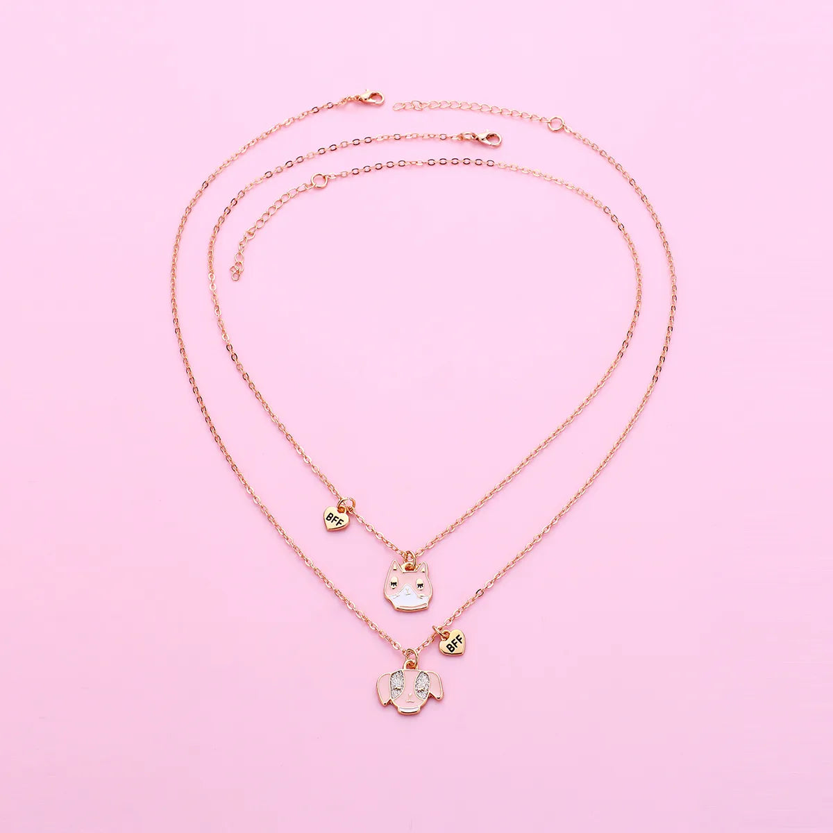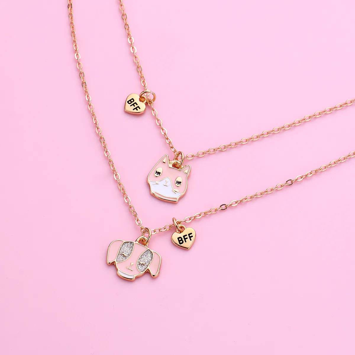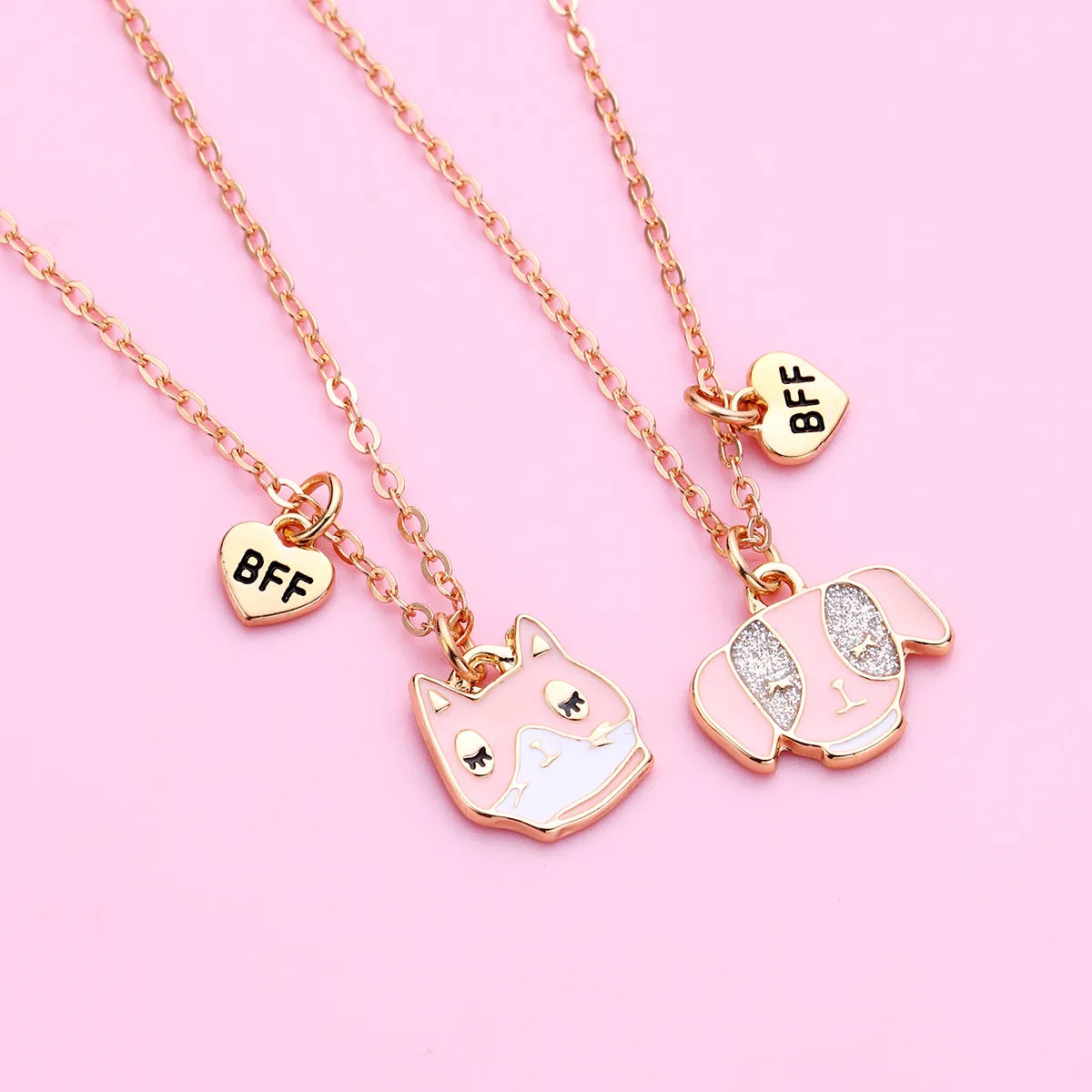 Lot de 2 Colliers D'amitié - Chat Chien - BFF - Best Friends Forever - Fantaisie - Pendentif Doré - Amitié - Mignon