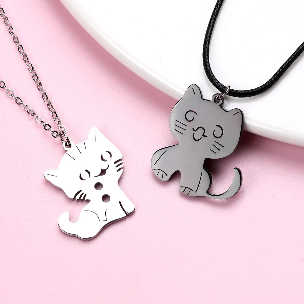 Ce lot de 2 chaines colliers d'amitié est parfait pour les BFFs (meilleures amies) ou les amoureux des chats. Les pendentifs en forme de chats symbolisent l'amitié ou l'amour éternel. Fabriqués en acier inoxydable argenté, ces bijoux à partager sont durables et élégants.