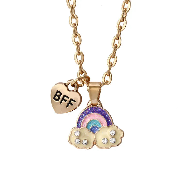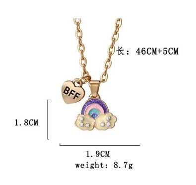 Lot de 2 Colliers D'amitié - Coeur Arc en Ciel Nuages - BFF - Best Friends Forever - Amoureux Couple - Fantaisie - Mignon - Amitié