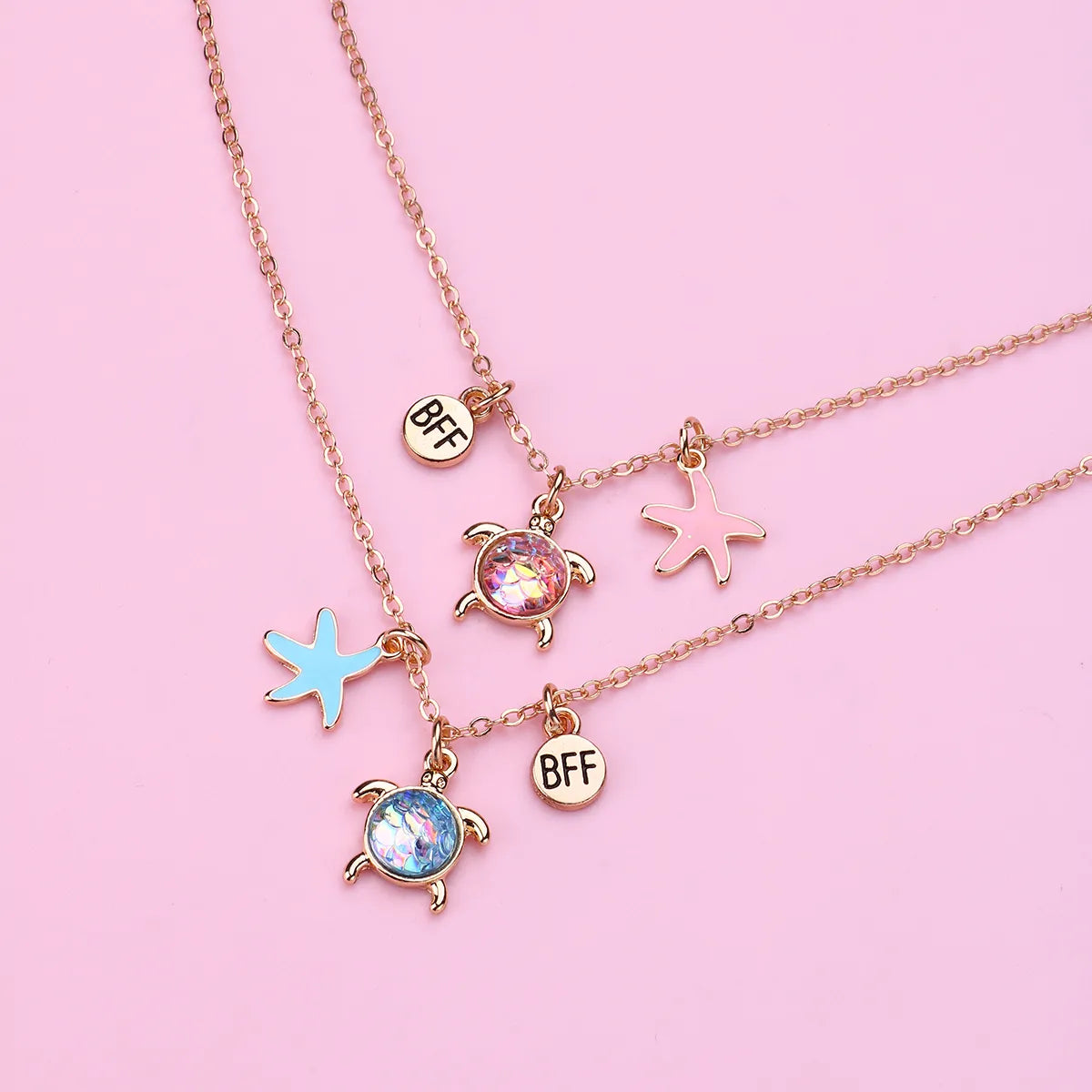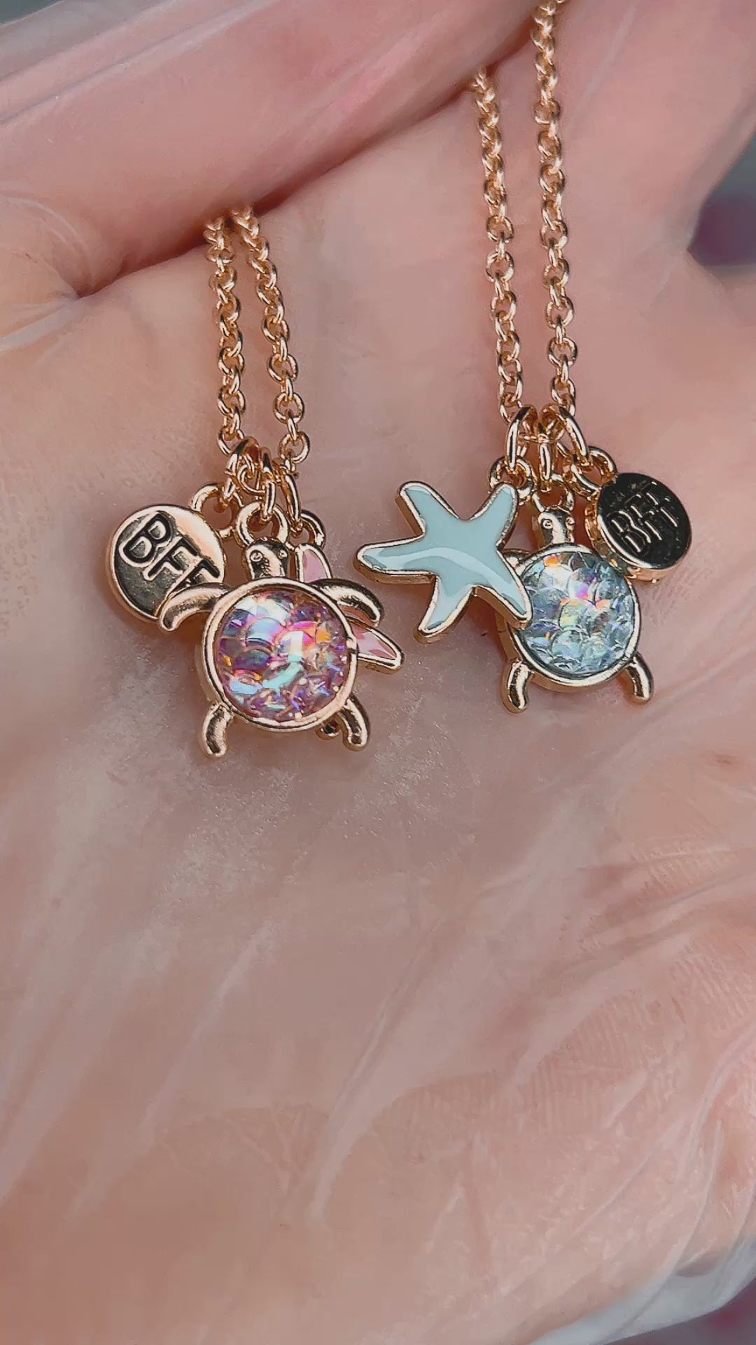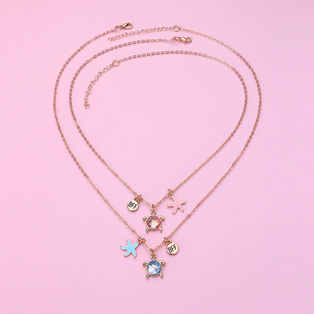Lot de 2 Colliers D'amitié - Tortue Etoile de Mer - BFF - Best Friends Forever - Fantaisie - Pendentif Doré - Amitié - Mignon
