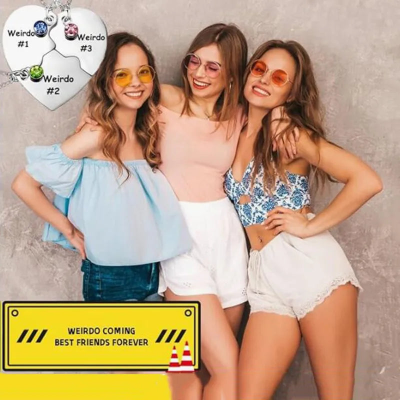 Lot de 3 Colliers D'amitié - Coeur - BFF - Best Friends Forever - "Weirdo" - Acier Inoxydable - Strass - Amitié