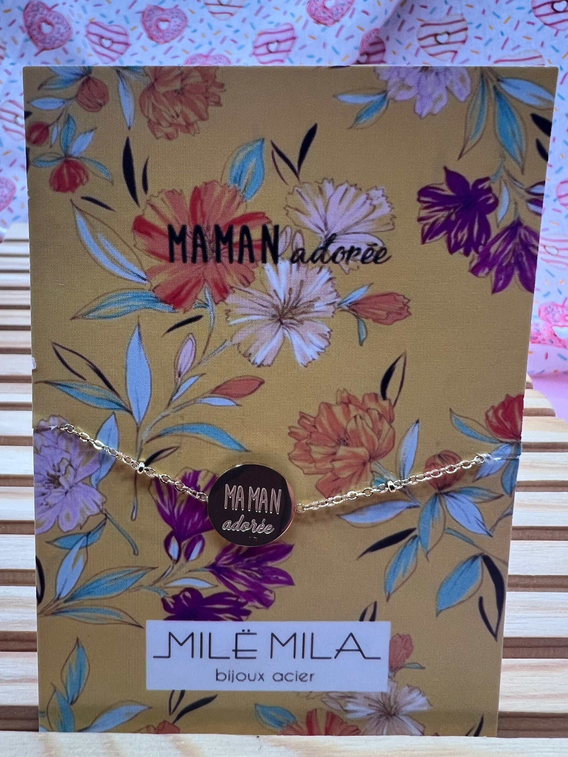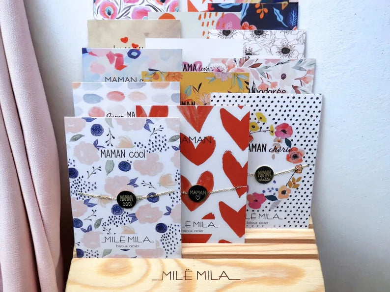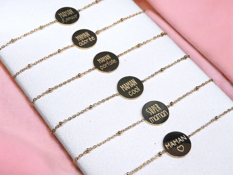 Bracelet Message avec Carte - Acier Inoxydable - Maman Amour Adoré Cool Chérie - Doré