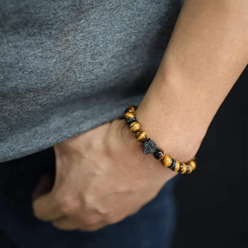 Découvrez notre bracelet en pierre naturelle pour homme, agrémenté d'un pendentif leopard majestueux. Ce bijou unique allie élégance et force, capturant l'essence du style masculin contemporain. Chaque pierre est soigneusement sélectionnée pour sa beauté naturelle et sa texture unique, tandis que le pendentif panthère ajoute une touche audacieuse et mystérieuse à l'ensemble. Parfait pour ceux qui apprécient les accessoires raffinés et significatifs, ce bracelet est un ajout incontournable à toute collection de bijoux. Que ce soit pour une occasion spéciale ou pour rehausser votre look quotidien, laissez-vous séduire par le charme indomptable de ce bracelet exceptionnel.
