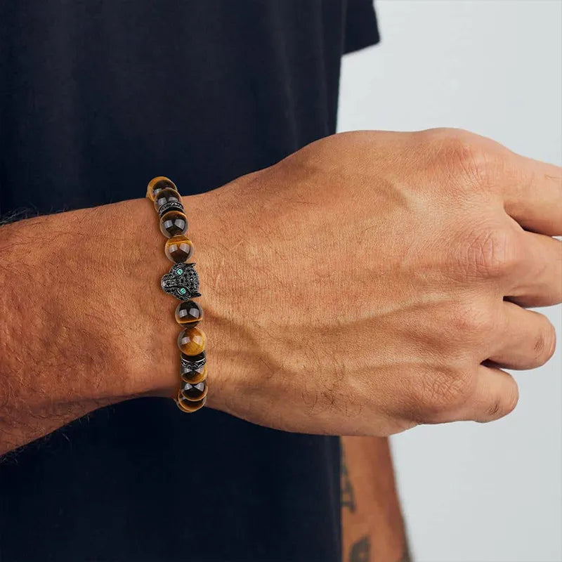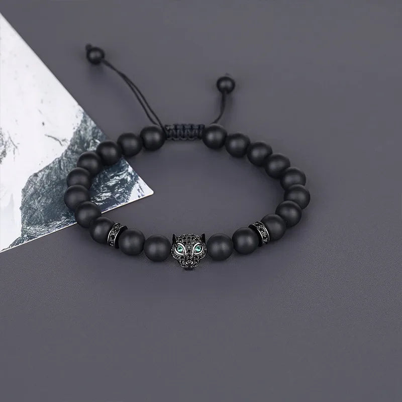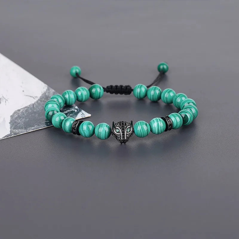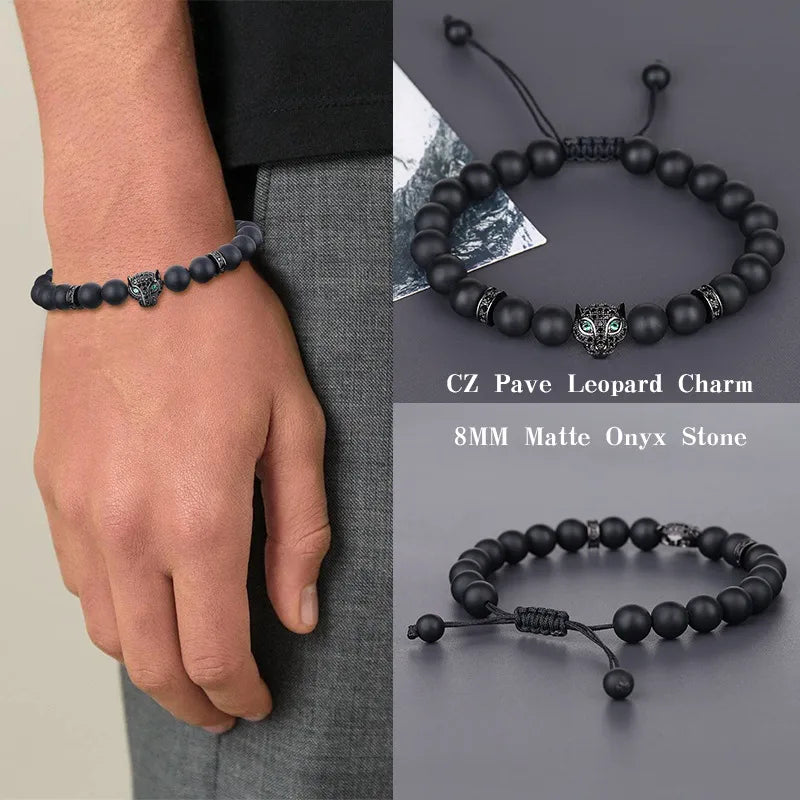 Bracelet Pierre Naturelle Cordon Réglable - Homme - Pendentif Leopard