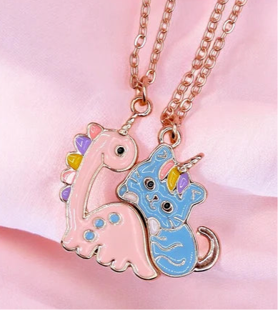 Lot de 2 Colliers D'amitié Aimantés - Dinosaure Chat Licorne - Mignon - BFF - Best Friends Forever - Amitié - A Partager