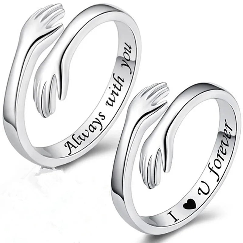 Lot de 2 Anneaux Réglable pour Adultes - Bagues - Mains Always with You - BFF - Best Friends Forever - Couple Amoureux Amitié