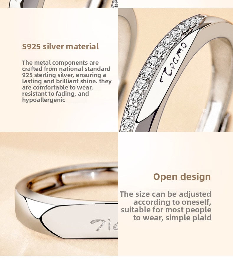 Lot de 2 Anneaux Réglable pour Adultes - Bagues - Ti Amo - Couple Amoureux Amitié Argent Sterling 925