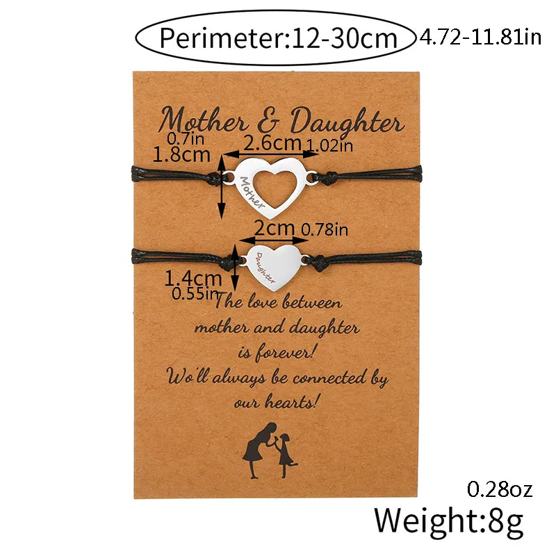 Lot de 2 Bracelets Cordon Réglable avec Carte - Mère Fille - Coeur - Famille Parents Enfant Maman Fille - Acier Inoxydable