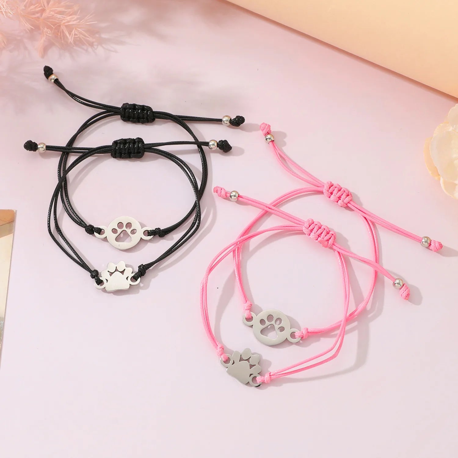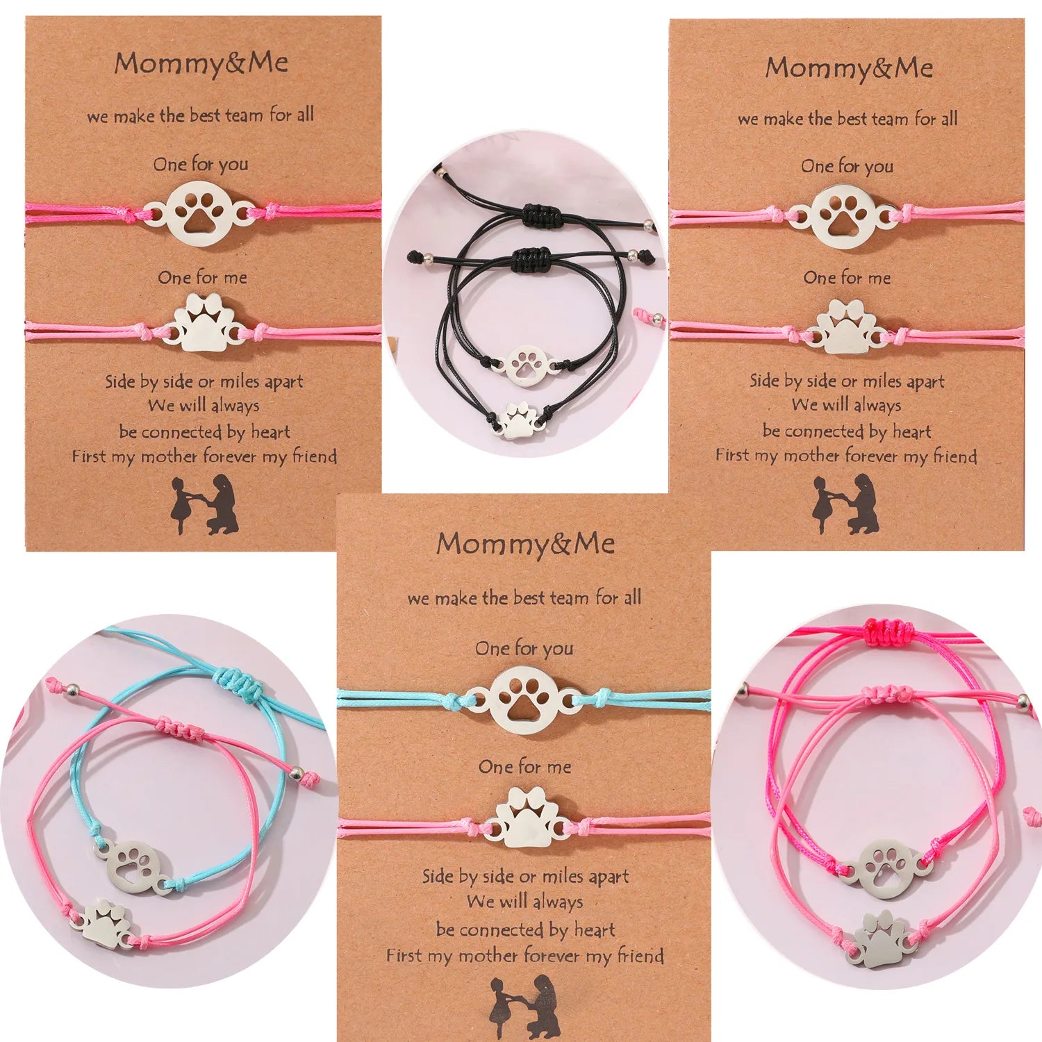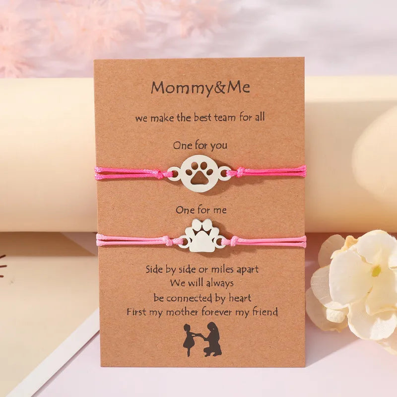 Lot de 2 Bracelets Cordon Réglable avec Carte - Mère Fille - Pate Chien Chat - Famille Parents Enfant Maman Fille - Acier Inoxydable