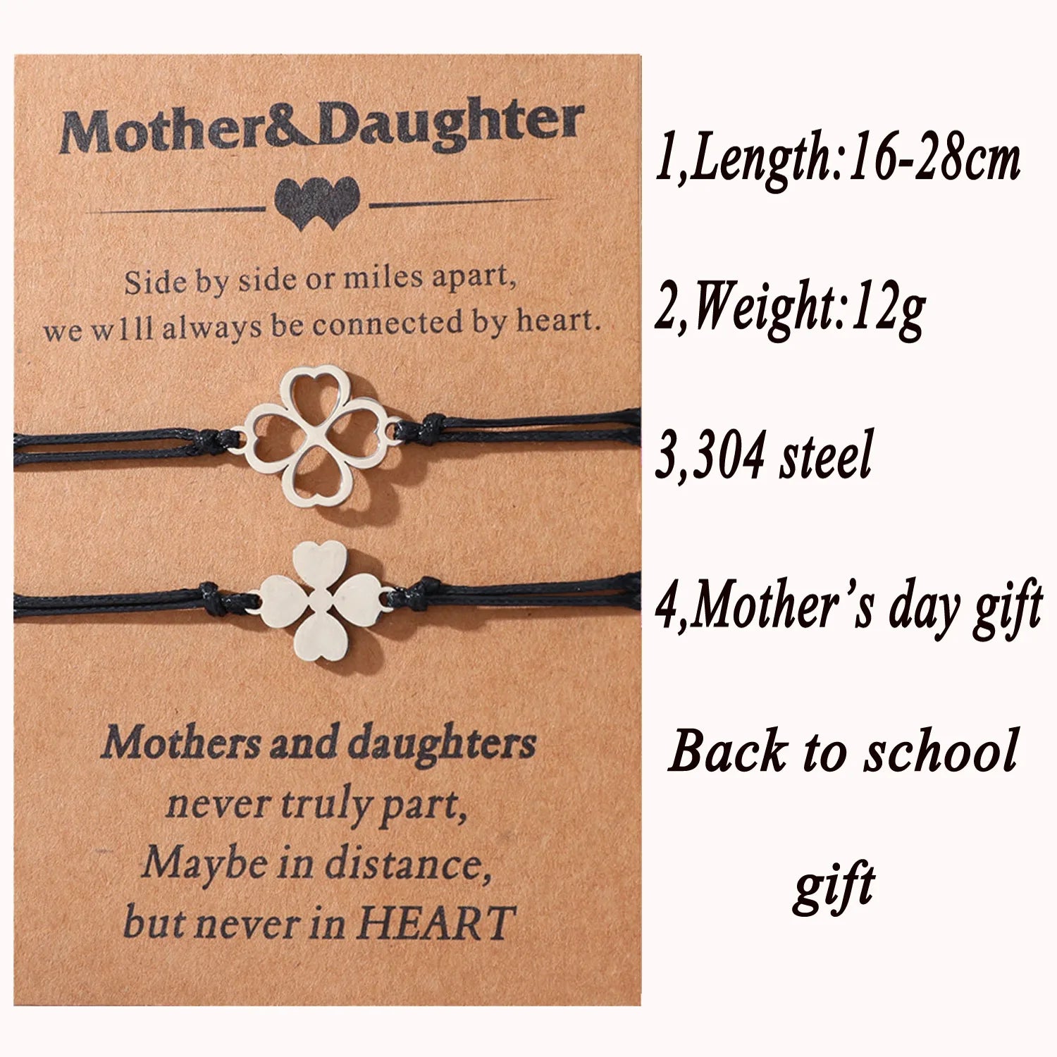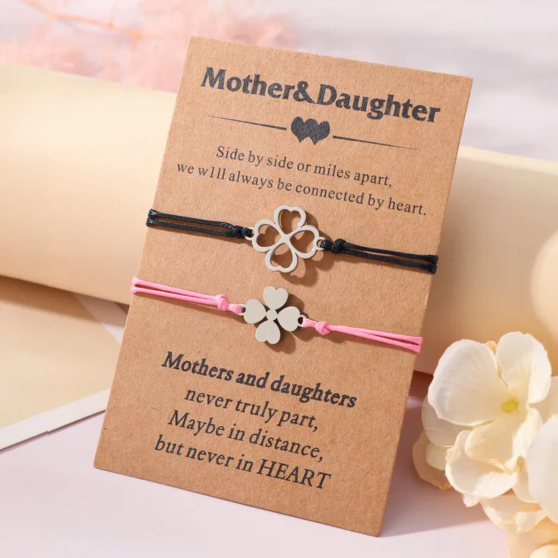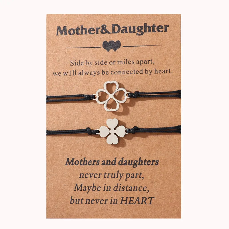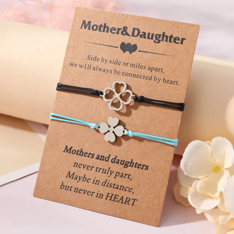Lot de 2 Bracelets D'amitié Cordon Réglable avec Carte - Trèfle 4 feuilles - mère fille - famille