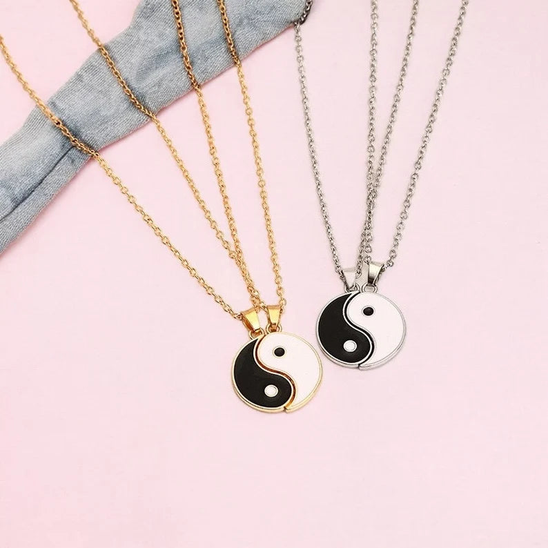 Découvrez notre magnifique lot de 2 chaînes colliers d'amitié Ying Yang. Parfait pour symboliser votre lien indéfectible avec votre meilleur(e) ami(e) ou votre partenaire, ces colliers sont disponibles en argenté ou doré pour correspondre à tous les styles. Chaque pendentif Ying Yang représente l'harmonie et l'équilibre, rendant ces bijoux non seulement élégants mais aussi profondément significatifs. Offrez-vous ou à vos proches ce joli duo de colliers et célébrez l'amitié ou l'amour éternel avec une touche d'élégance.