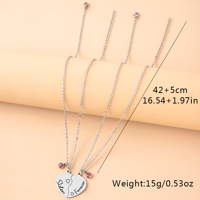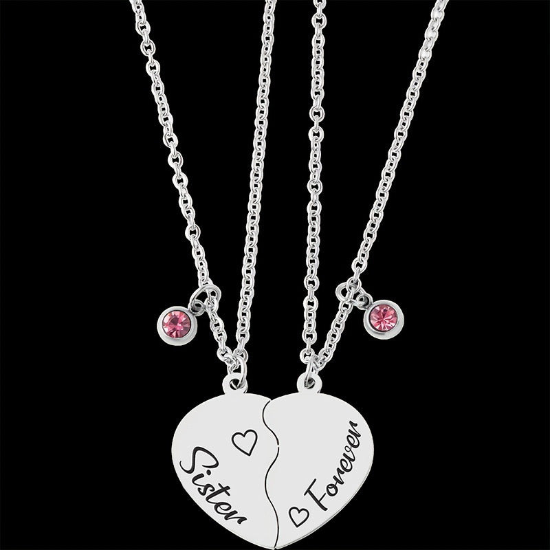Lot de 2 Colliers Sister Forever - Soeurs - Ainée Cadette - Famille Enfant Soeur Filles - Pendentif Coeur Strass - Acier Inoxydable