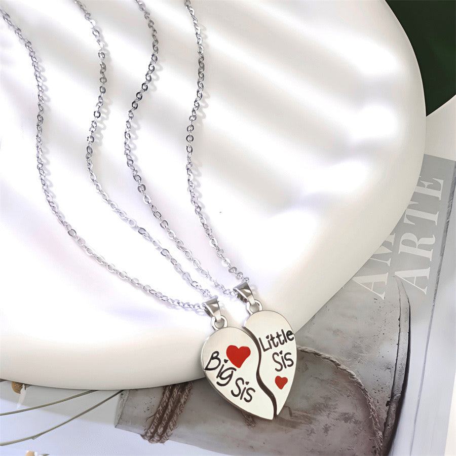 Lot de 2 Colliers Cœur - Soeurs - Famille Petite Soeur Grande Soeur - Pendentif Coeur
