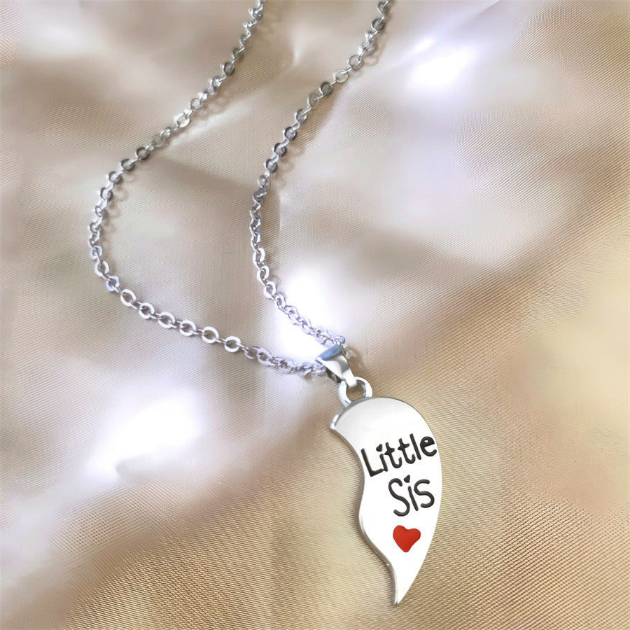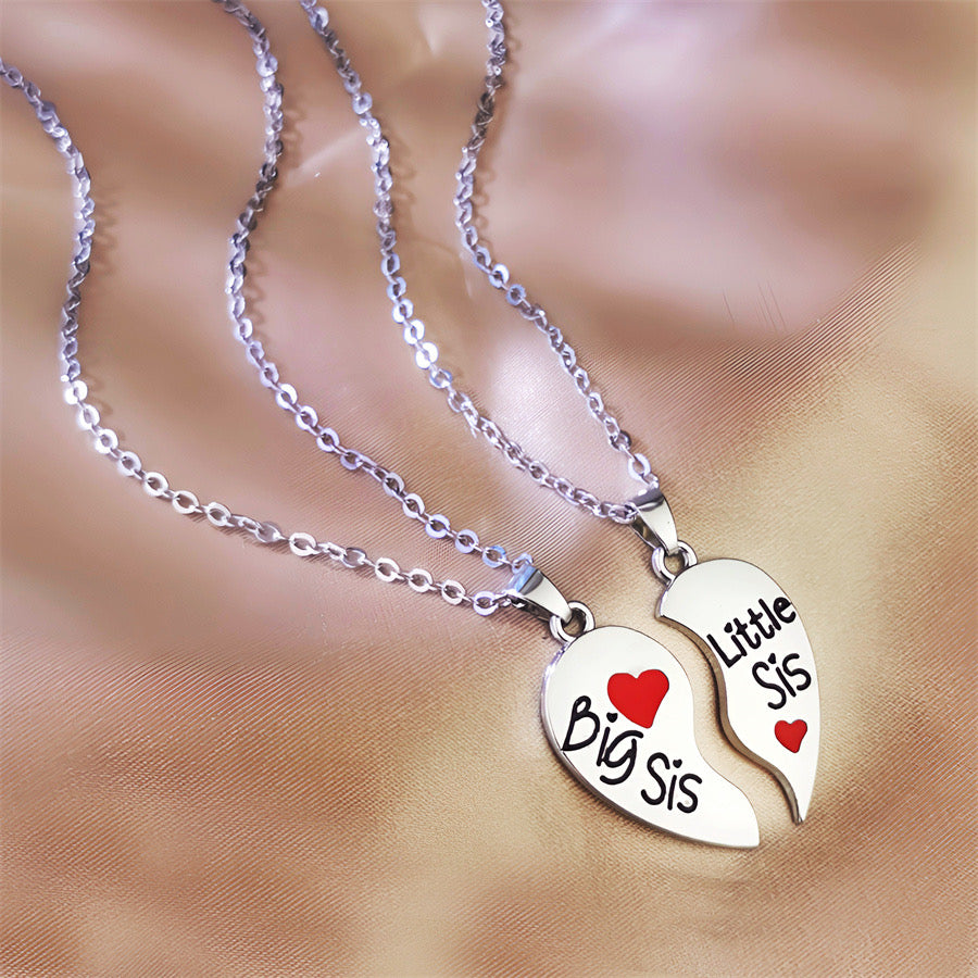 Offrez un cadeau spécial à votre soeur avec ce lot de 2 chaines colliers assortis. Ces magnifiques colliers symbolisent le lien unique qui unit les soeurs, avec un pendentif en forme de coeur. Que vous soyez la grande soeur protectrice ou la petite soeur espiègle, ces colliers sont parfaits pour célébrer votre lien familial. Faites plaisir à votre soeur ou gardez-en un pour vous pour symboliser votre amour fraternel.