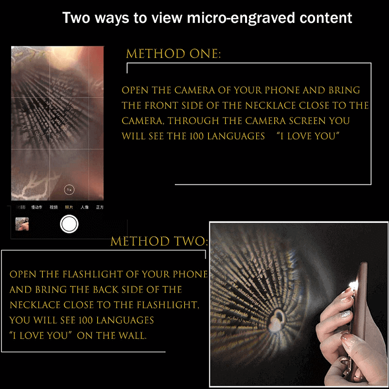 Chaque pendentif a une image je t'aime à l'intérieur.