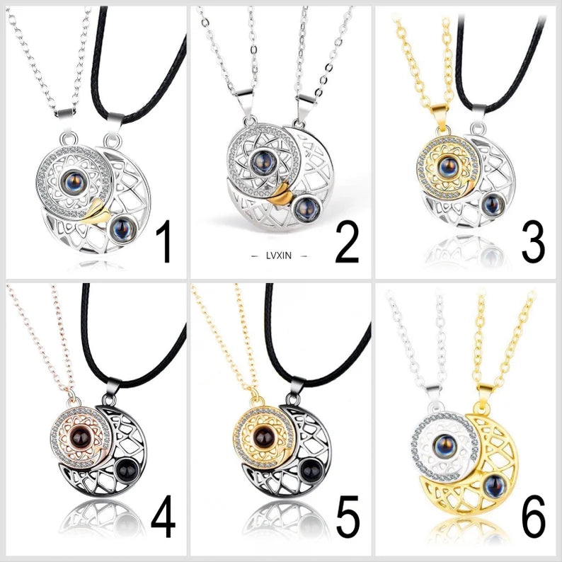 Lot de 2 Colliers D’amitié Couple Aimanté - Projection Je t’aime - Lune Soleil - A Partager - BFF - Best Friends - Amoureux Amitié