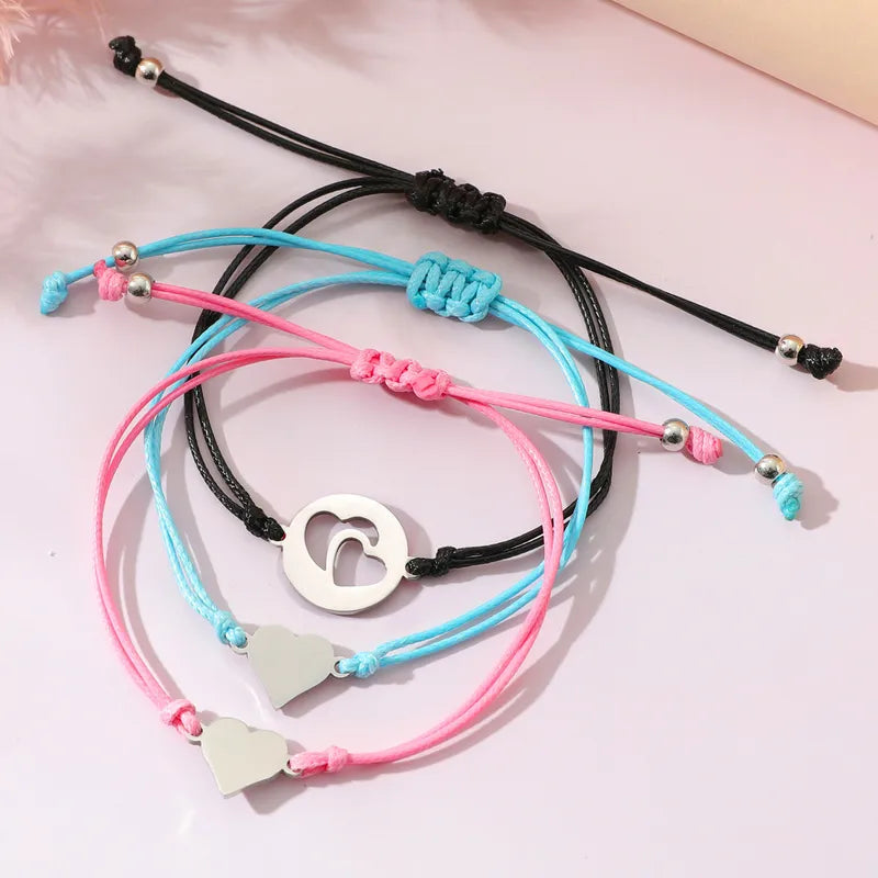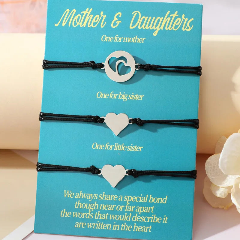Lot de 3 Bracelets Réglables avec Carte - Cœur Mère Filles - Famille Parents Enfant Maman Fille - Pendentif Coeur - Acier Inoxydable