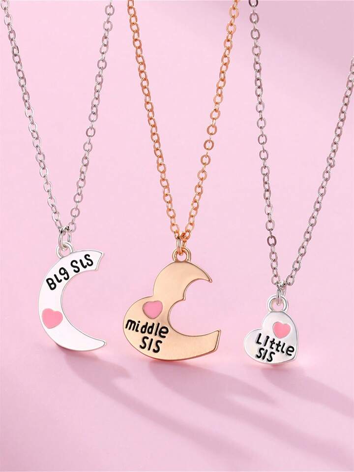 Découvrez le cadeau parfait pour célébrer le lien indissoluble entre sœurs avec notre lot exclusif de 3 chaînes colliers. Conçu spécialement pour les trios de sœurs, chaque collier représente un rôle unique dans la fratrie : l'Aînée, la Cadette et la Middle, symbolisant à merveille l'unité et l'amour familial. Ces colliers, à la fois élégants et pleins de sens, sont ornés d'un pendentif en forme de cœur puzzle, illustrant que chaque sœur est une pièce essentielle de ce lien affectueux. Parfaits pour être portés au quotidien ou lors d'occasions spéciales, ces bijoux fantaisie sont une magnifique manière de garder vos sœurs près de votre cœur, peu importe la distance.