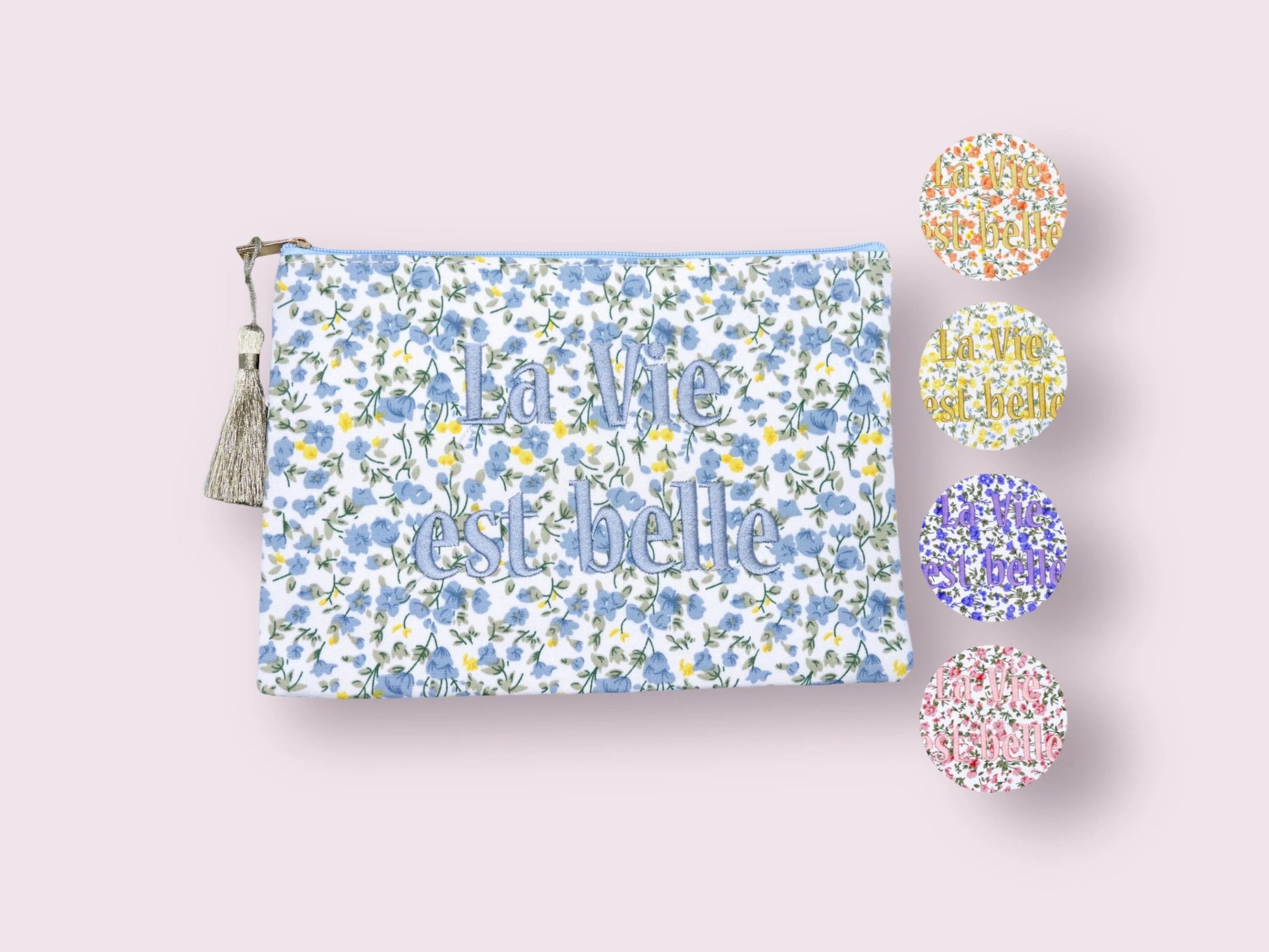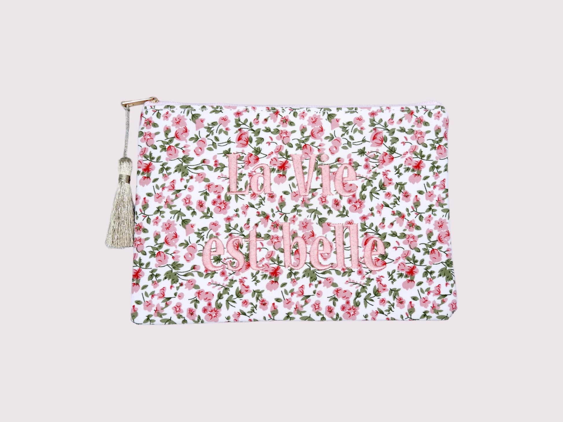 Pochette Maquillage - Trousse de Toilette - La Vie est Belle - Fleurie - Printemps - Cadeau Naissance - Layette