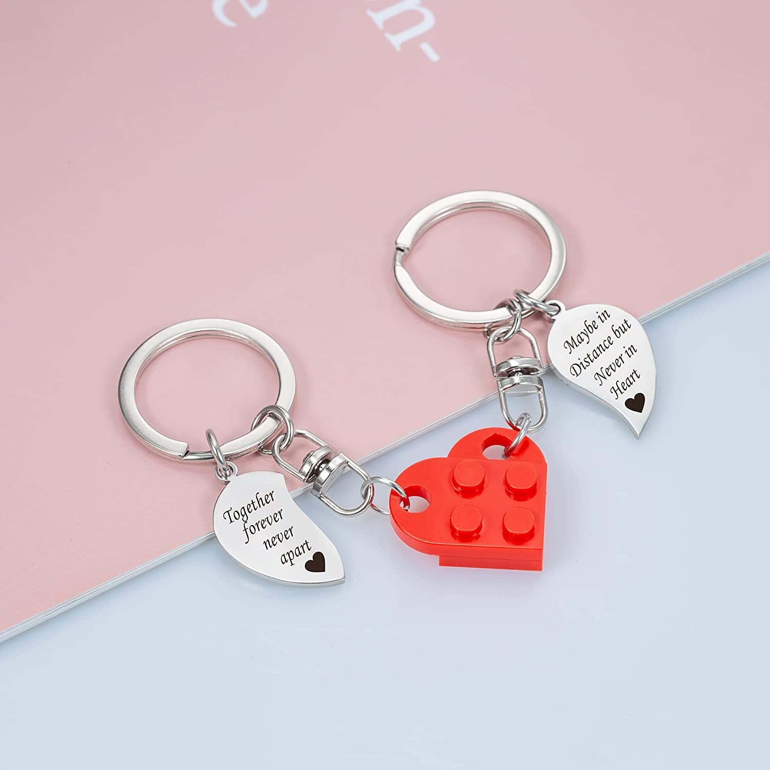 Porte Clés - Puzzle - Coeur - Séparé en deux à partager - Amoureux Couple Amitié - BFF - Best Friends - Acier Inoxydable - Jeu Construction
