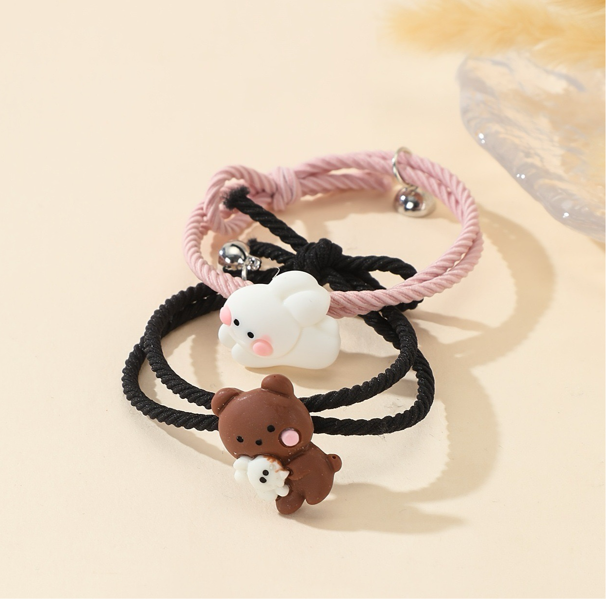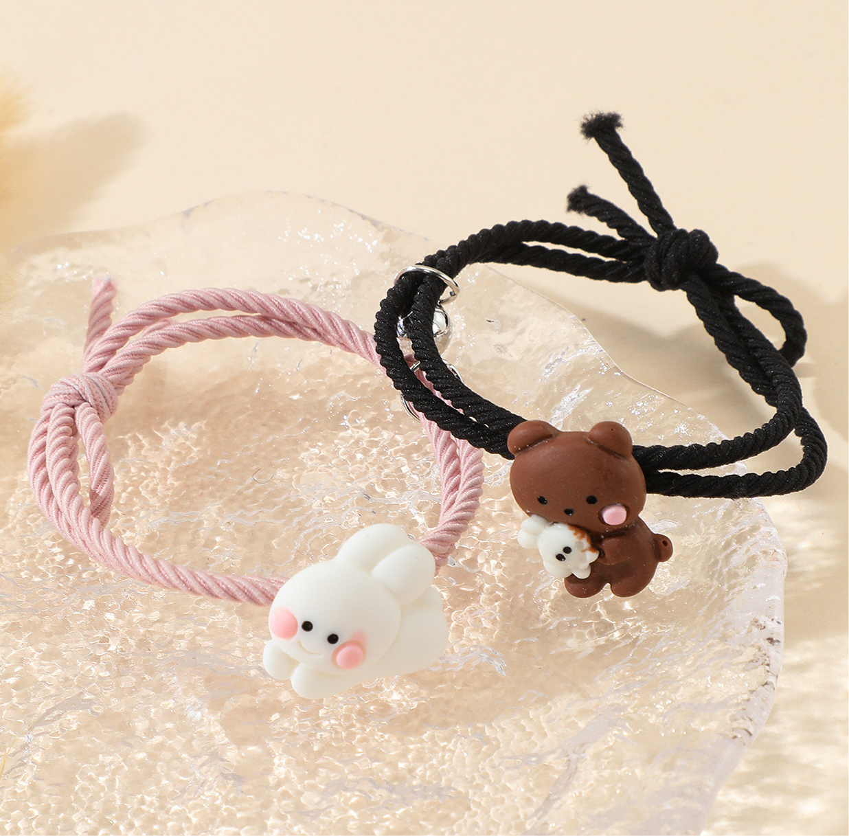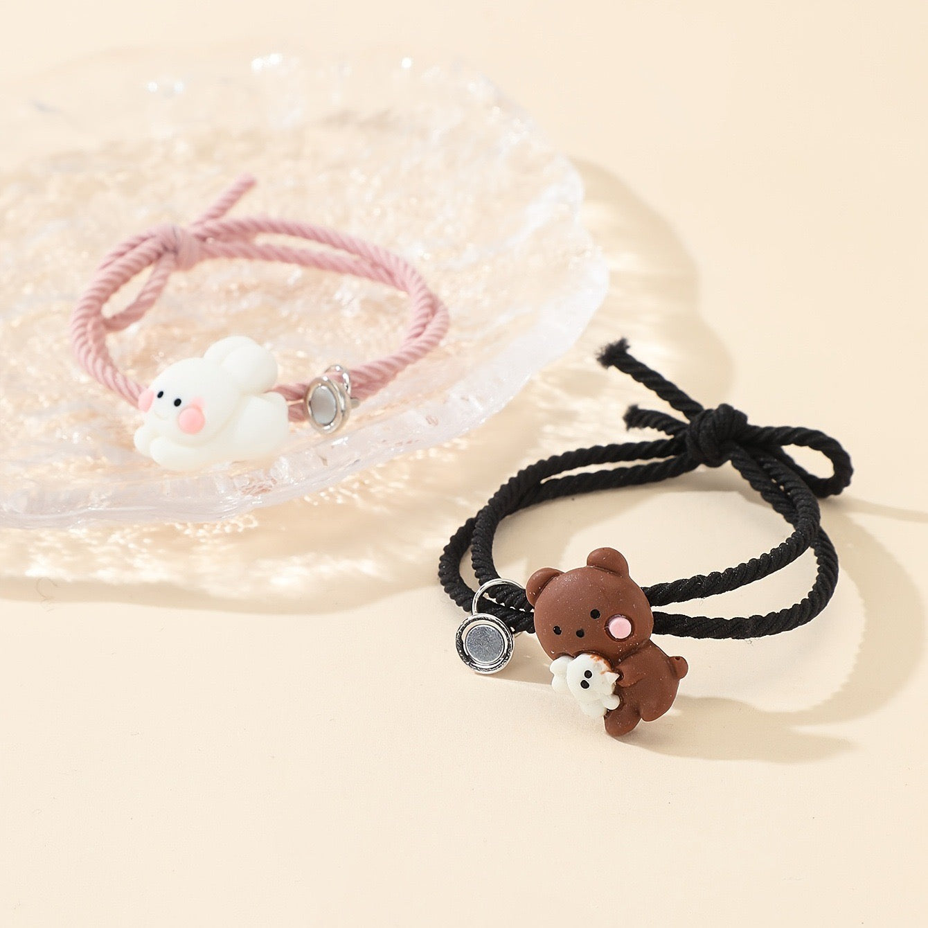 Lot de 2 Bracelets D'amitié Cordon Elastique - Ourson Lapin - BFF - Best Friends Forever - Amitié - Pendentif Boule Aimanté