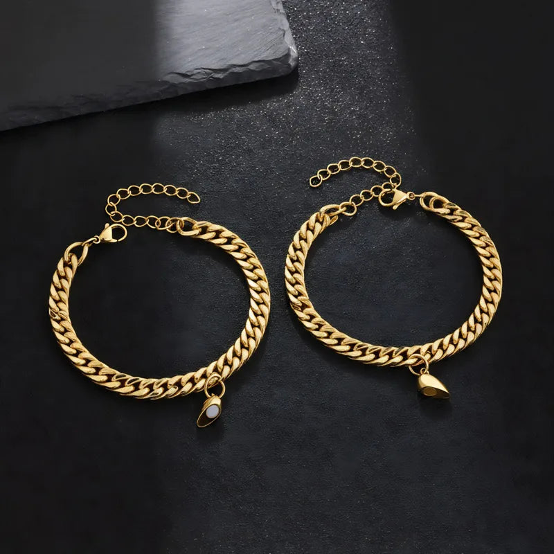 Découvre notre lot de 2 bracelets d'amitié gourmettes, parfaits pour célébrer les liens indéfectibles entre amis ou en couple. Ces bracelets élégants et fantaisie sont ornés d'un pendentif aimanté en forme de cœur, symbolisant l'unité et l'affection. Fabriqués avec soin, ils allient style et sentiment, offrant un cadeau idéal pour exprimer votre amitié éternelle ou votre amour sincère. Portez-les ensemble pour un look coordonné ou partagez-les avec votre BFF pour renforcer votre connexion spéciale. Un accessoire indispensable pour ceux qui chérissent la complicité et l'amitié durable.