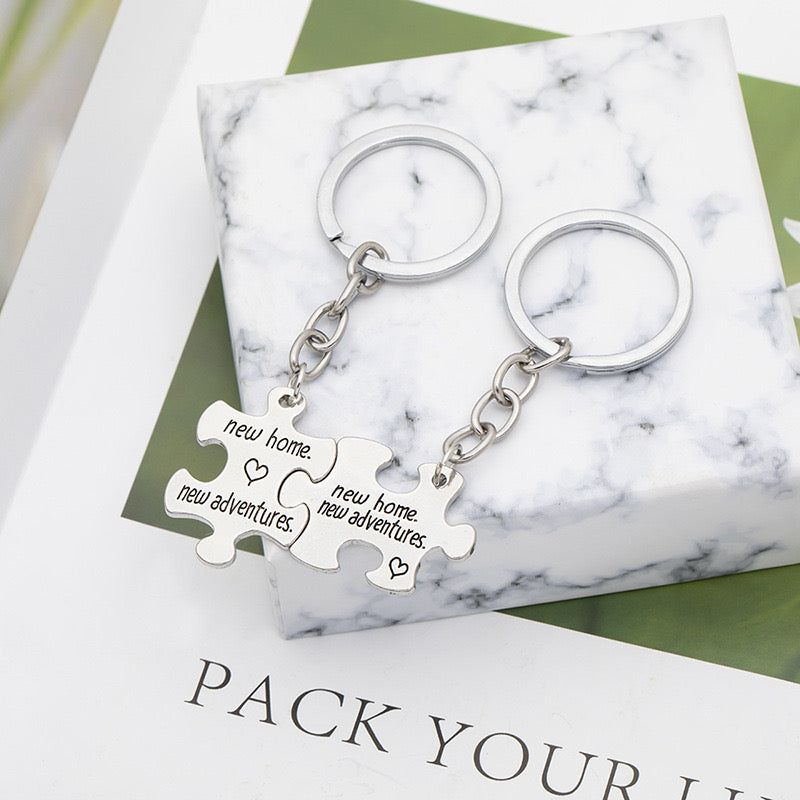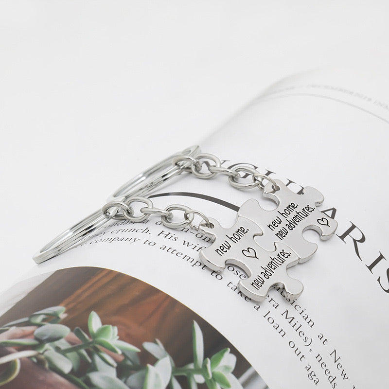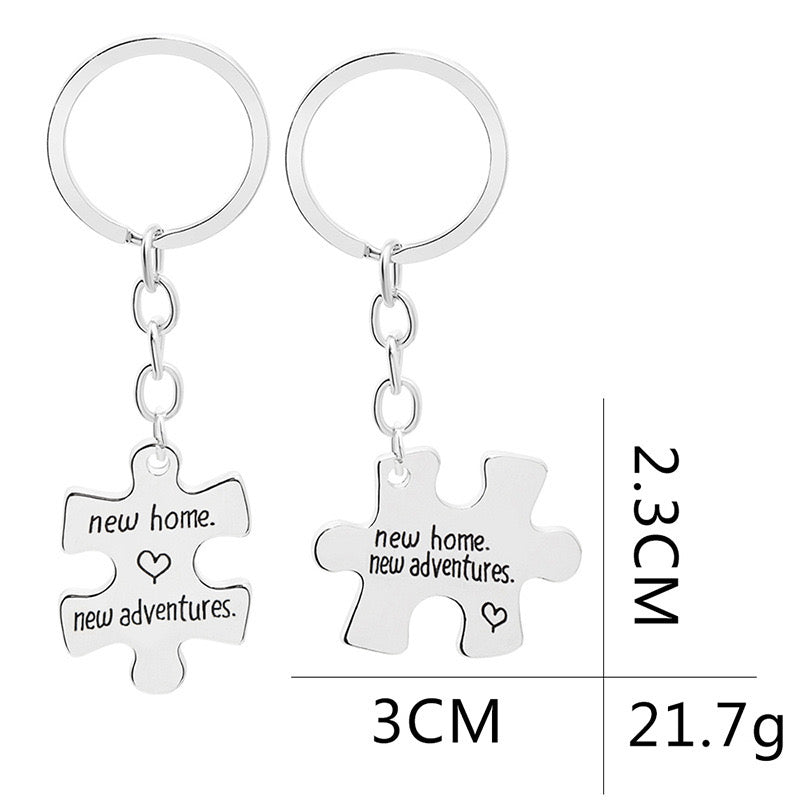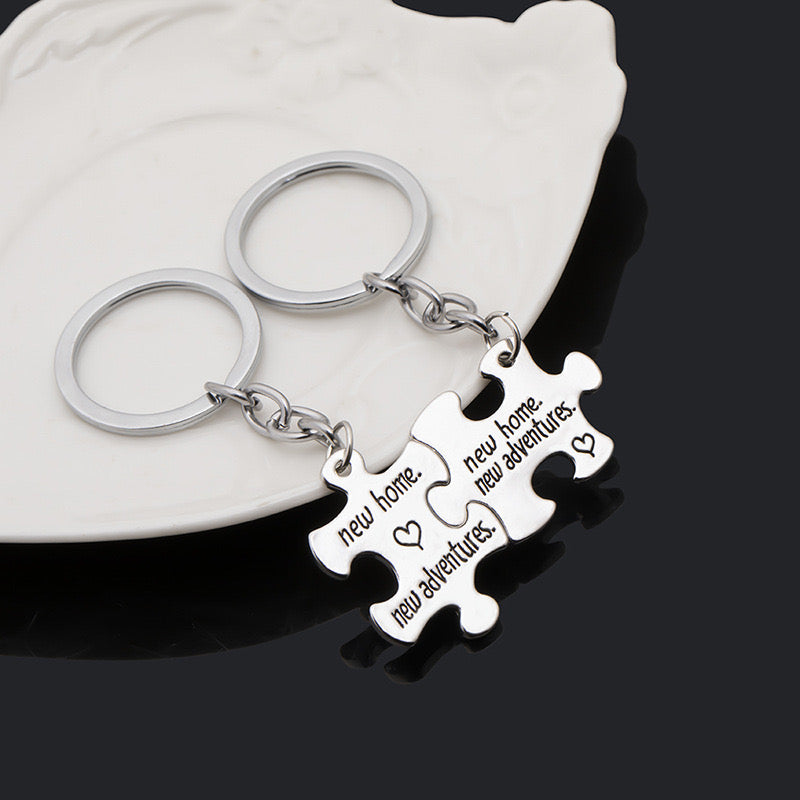 Porte Clés - Puzzle - Nouvelle Maison - Séparé en deux à partager - Amoureux Couple Amitié - BFF - Best Friends - Acier Inoxydable
